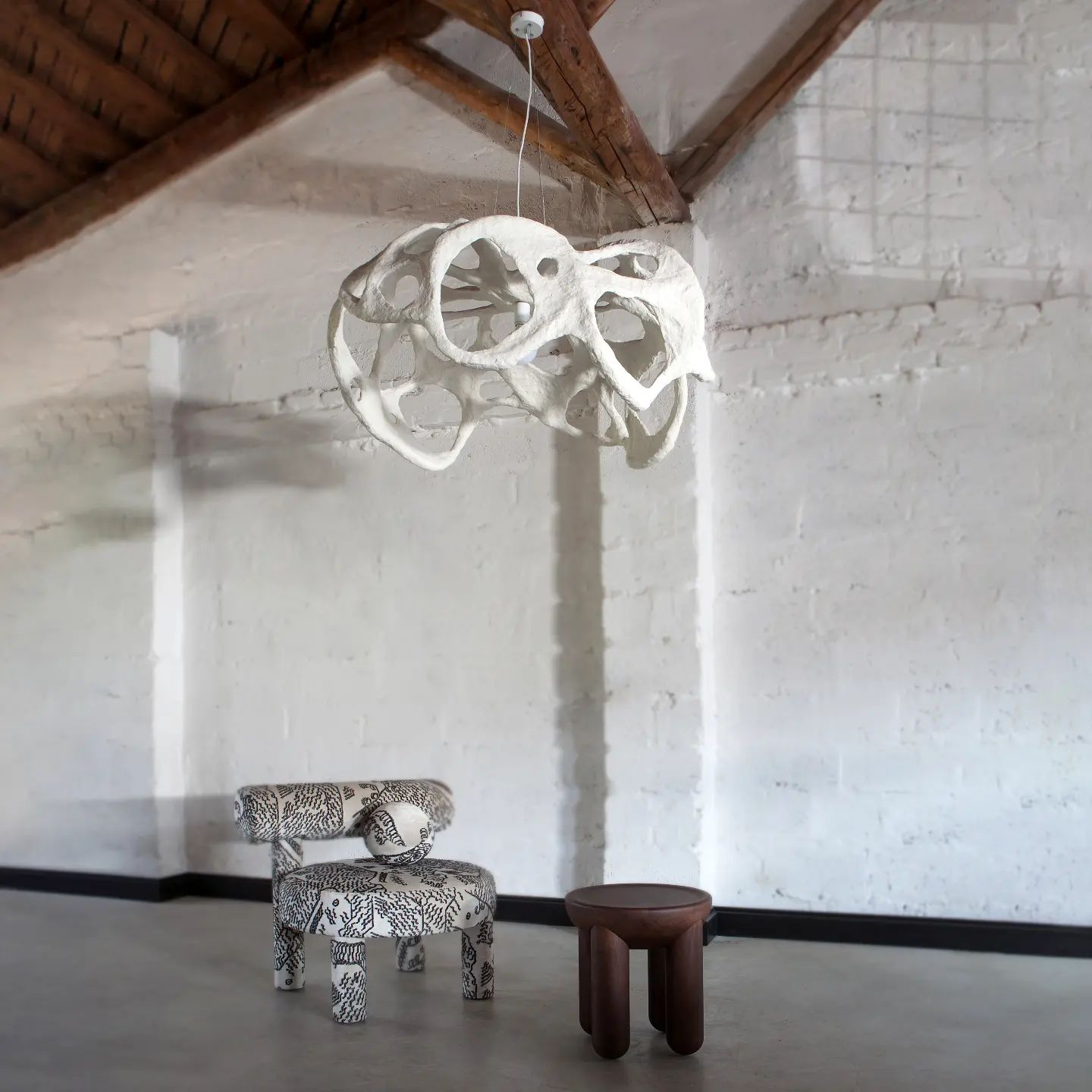 Crafted from cellulose, MAREVO Pendant Lamp embodies the essence of nature's dynamic dance, casting enchanting games of light and shadows that redefine your space.