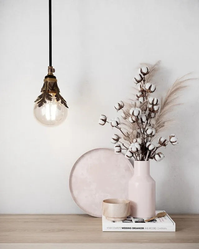 A minimalist brass pendant with cast decorative leaves and a rich brown patina, this fixture brings understated elegance to any space. Perfect for various interiors, it finds its most harmonious fit in Art Deco settings.