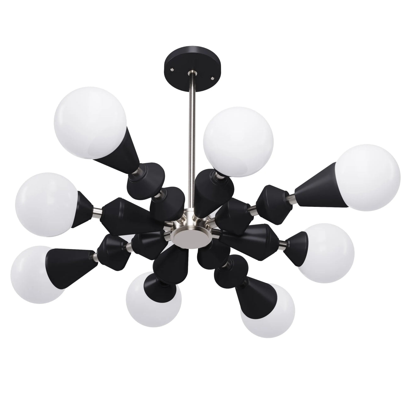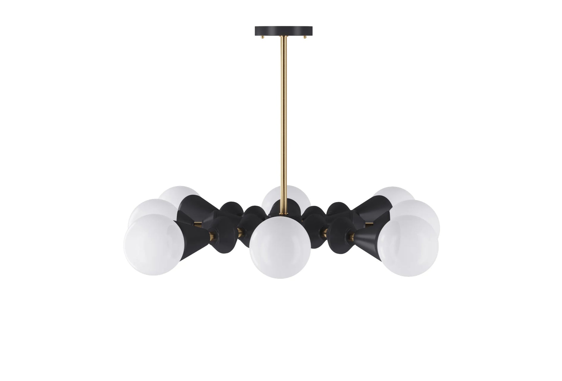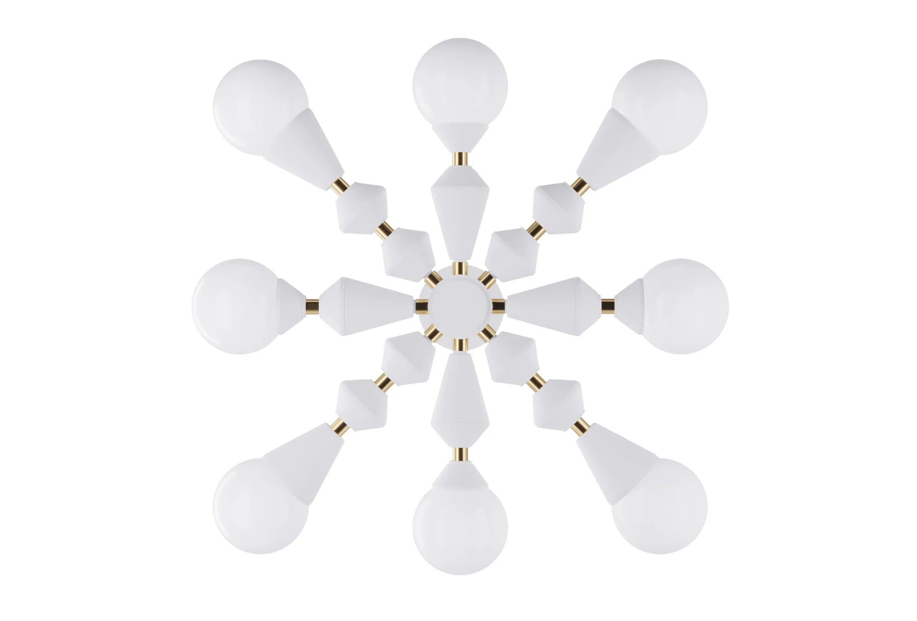 The horizontal structure makes it perfect even for spaces with lower ceilings, and the white glass shades gently diffuse light, creating a warm and inviting atmosphere.