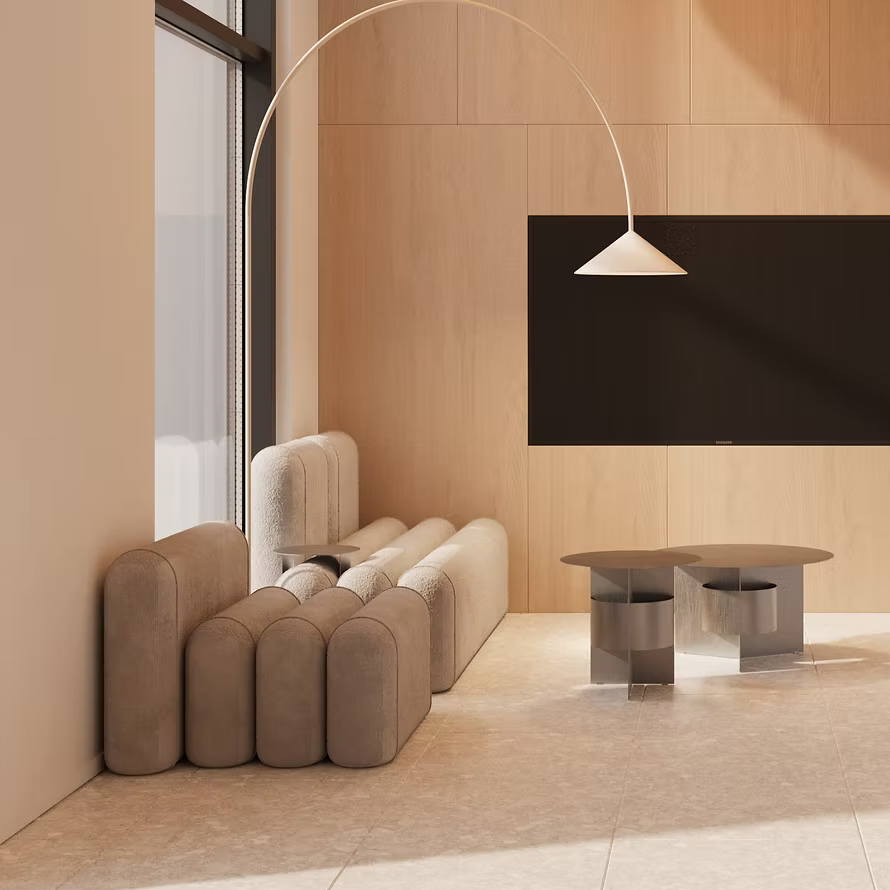 The PUFFA M12 Sofa is a modular upholstered sofa from Kint’s Puffa system, designed as a soft-furniture solution for contemporary residential and commercial interiors. It features a minimalist architectural language with clean horizontal and vertical segmentation that aligns with modern interior planning and specification standards.