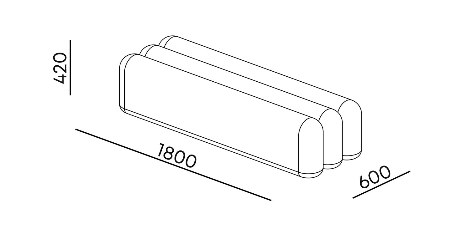 With overall dimensions of approximately 1800 mm in length, 600 mm in width and a seat height of 420 mm, the bench is well‑proportioned for a variety of interior applications, from reception areas and communal corridors to gallery lounges or residential living spaces. The design is modular and can integrate with other Puffa system elements, supporting flexible layout planning and coherent spatial design.