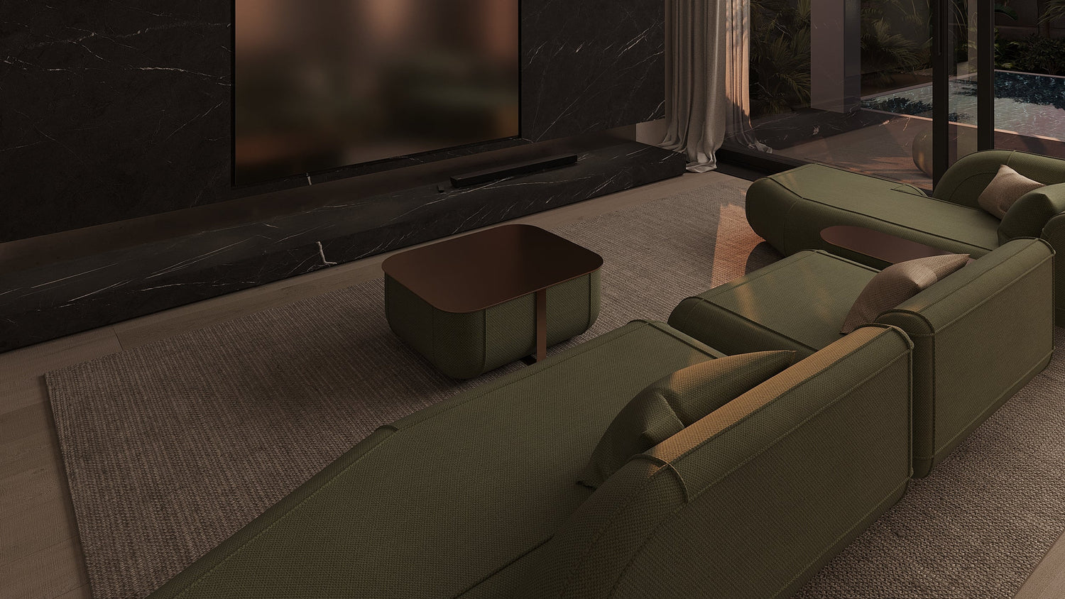 RAFT Coffee Bedside Table 2 is part of the RAFT modular furniture family by DONNA Furniture, designed with practical functionality integrated into a cohesive interior solution. The RAFT system includes a hollow coffee table element that can double as a bedside table, offering a purposeful surface within living and bedroom environments.