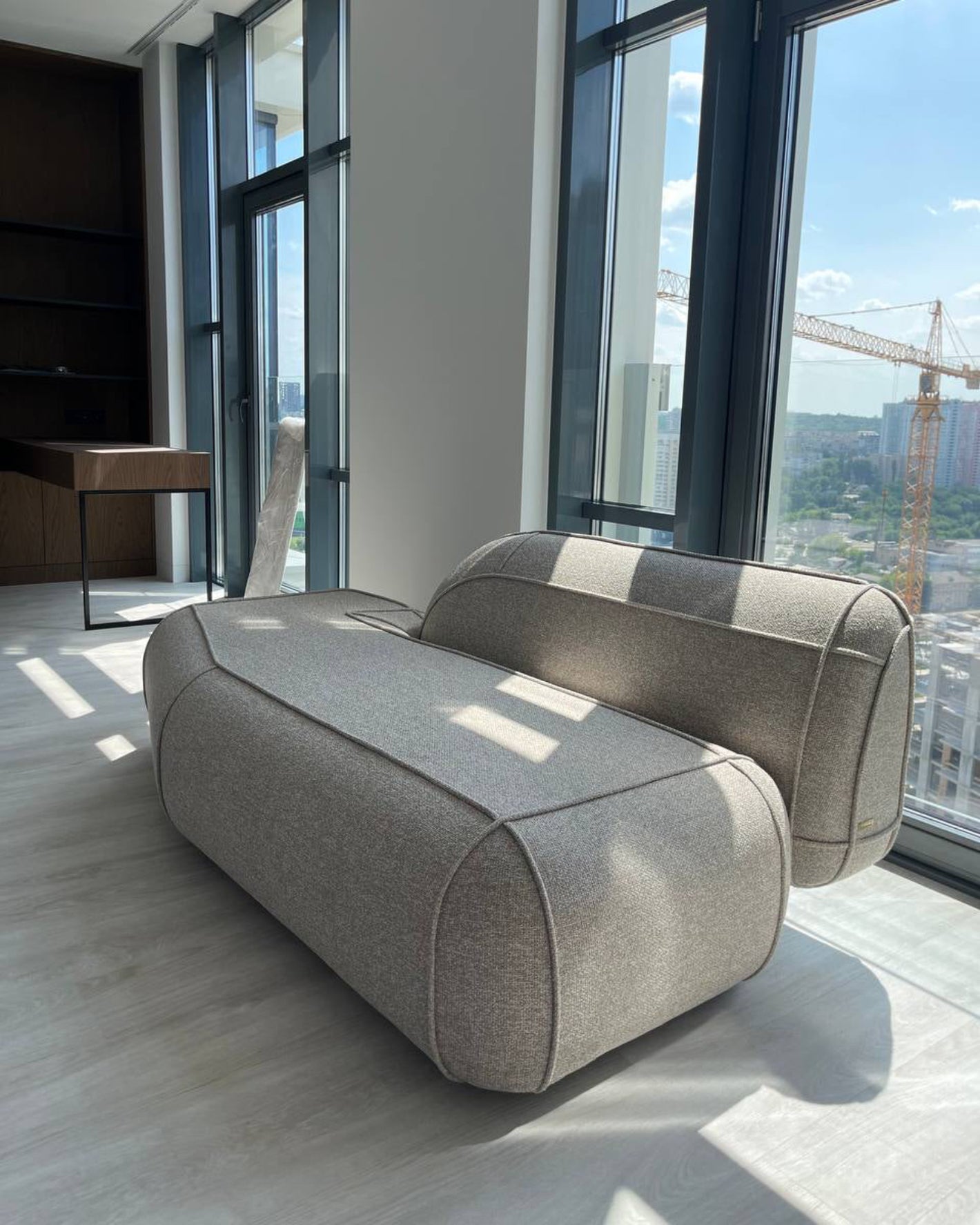 Raft Sofa 1 is part of the RAFT sofa collection created by DONNA Furniture in collaboration with SVOYA studio. The design was conceived by Denis Sokolov and his team to offer a modern, modular seating solution with clean, “inflated” forms and expressive stitched detailing. The sofa’s architecture draws inspiration from the silhouette of a dinghy, which informs its distinctive contours and structural language.
