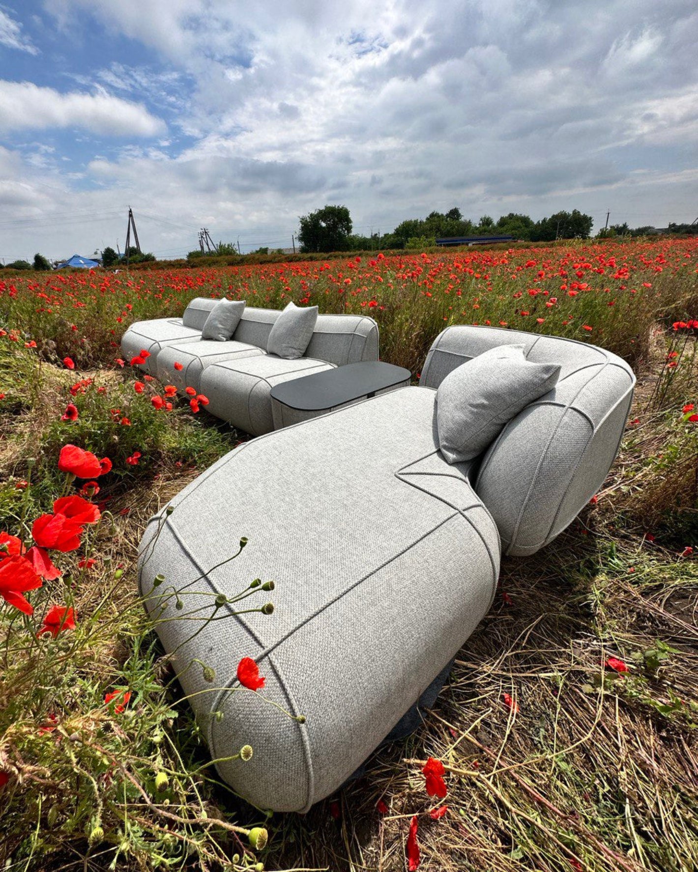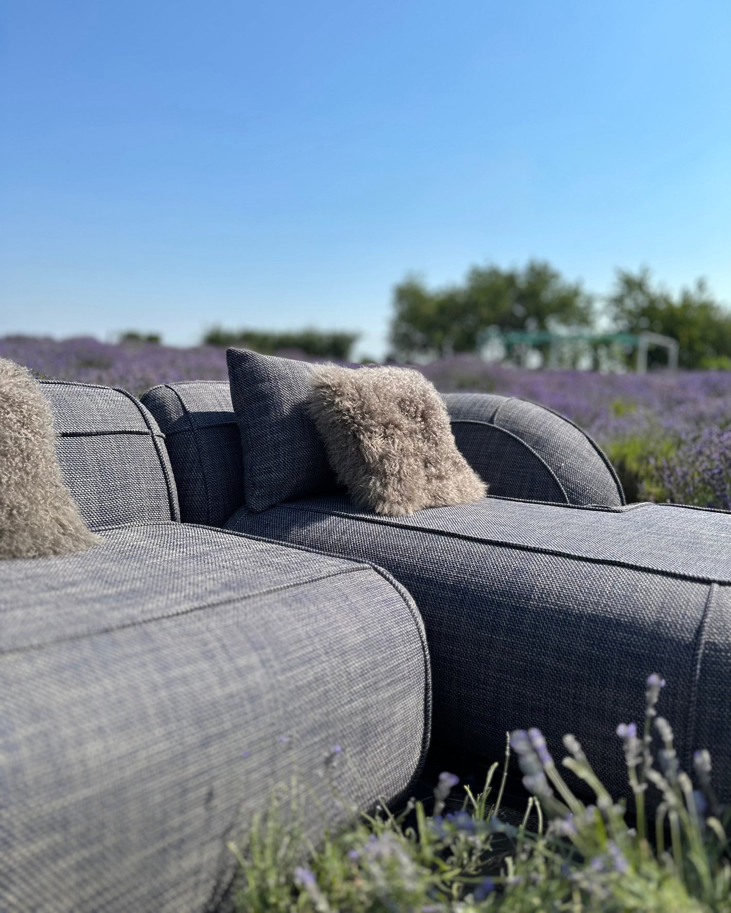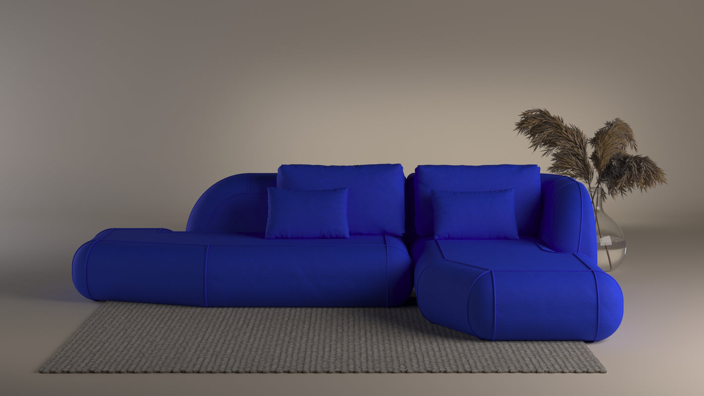 The design concept draws inspiration from the form of an inflatable dinghy. This influence is expressed through rounded, “inflated” shapes and rope-like stitching that defines the structure of the sofa.
