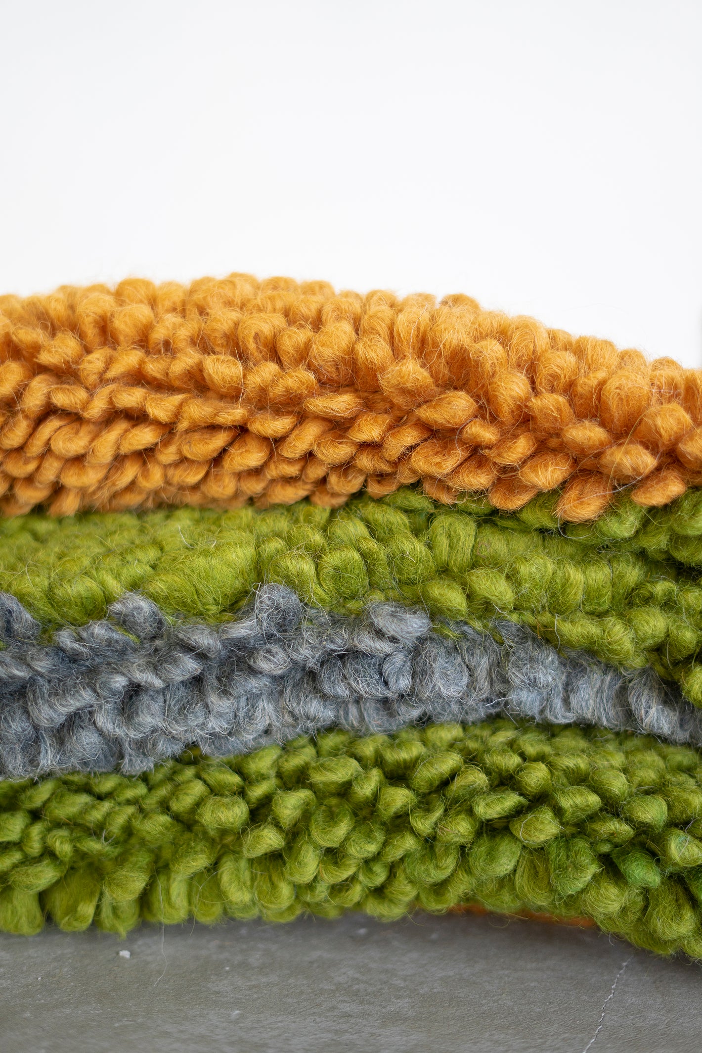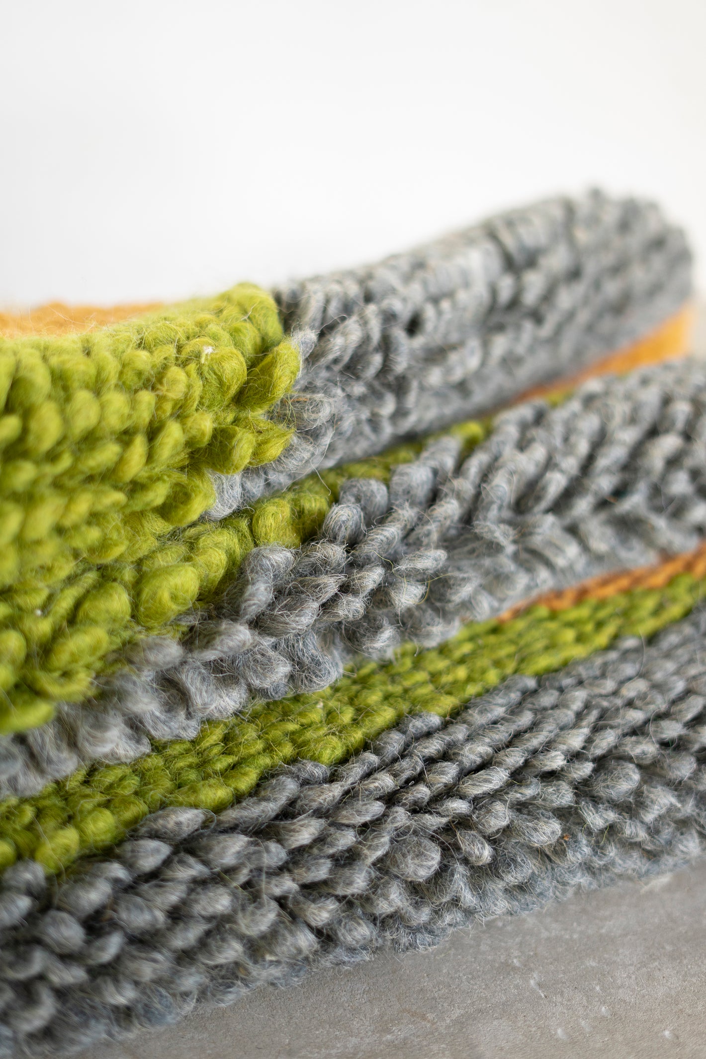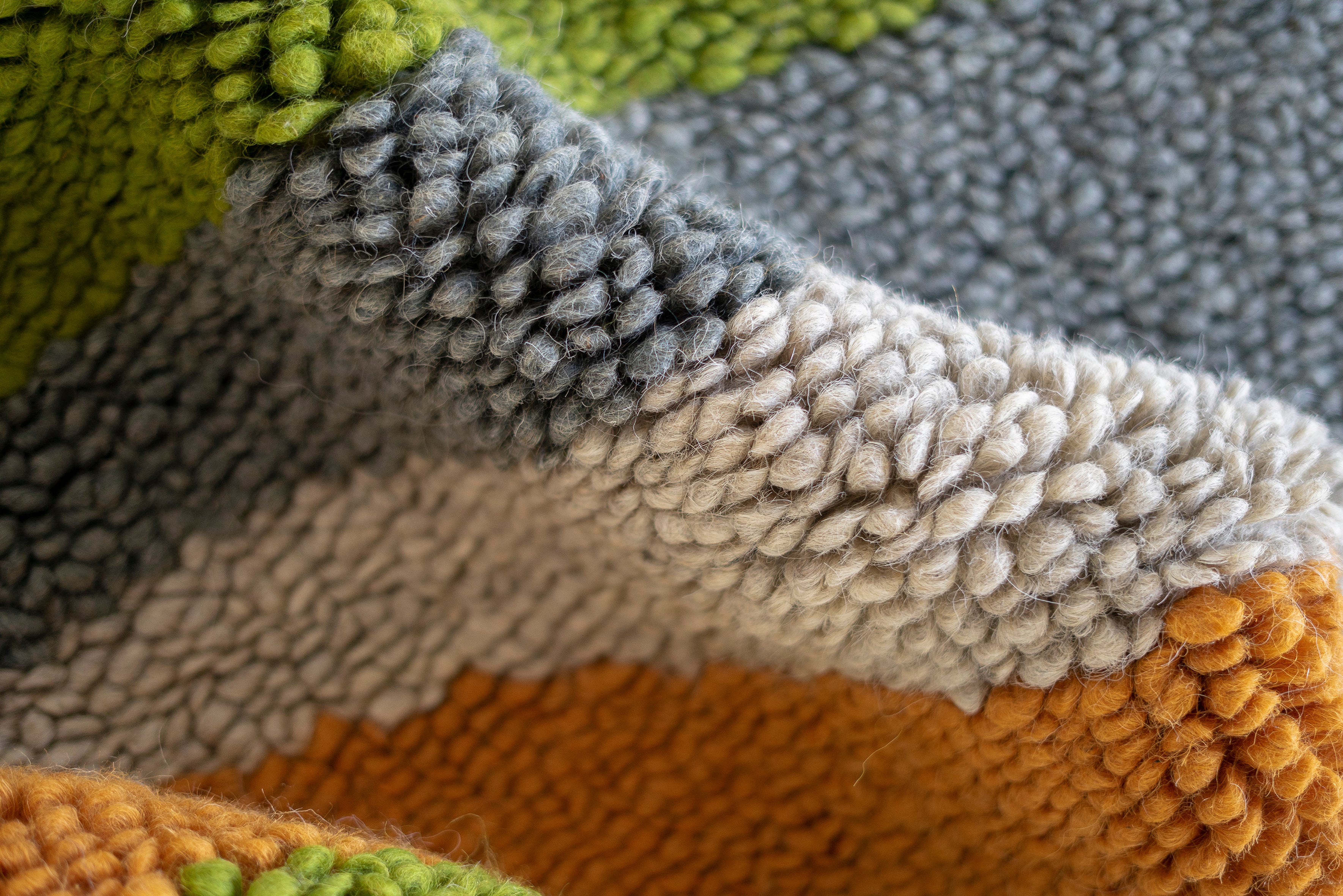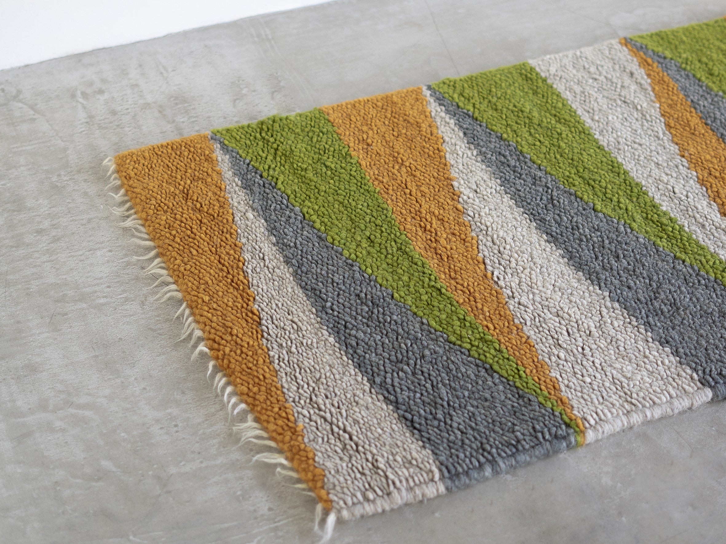 This bright rug, featuring colours like orange, light green, white, and grey, brings liveliness and colour to any room. Crafted from 100% Ukrainian sheep's wool, it offers both quality and warmth, making it a standout piece that not only enlivens your space but also adds a touch of authenticity and natural comfort.