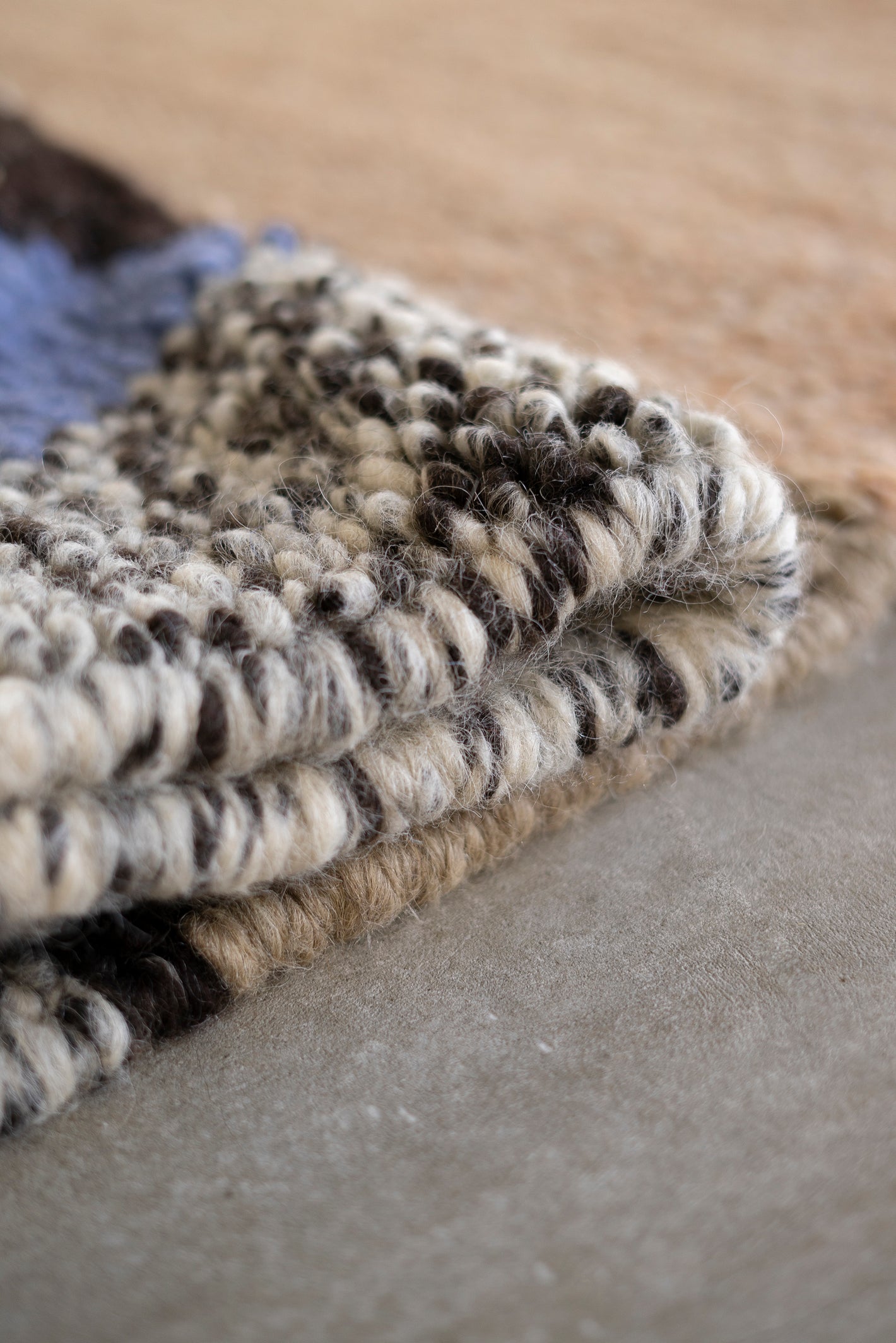This rug features distinct geometric lines and shapes, creating a visual appeal. Its bright and at the same time monochrome colours draw the eye and infuse the room with a sense of playfulness. Perfect for adding a lively touch to any space, this rug combines design with dynamic energy.