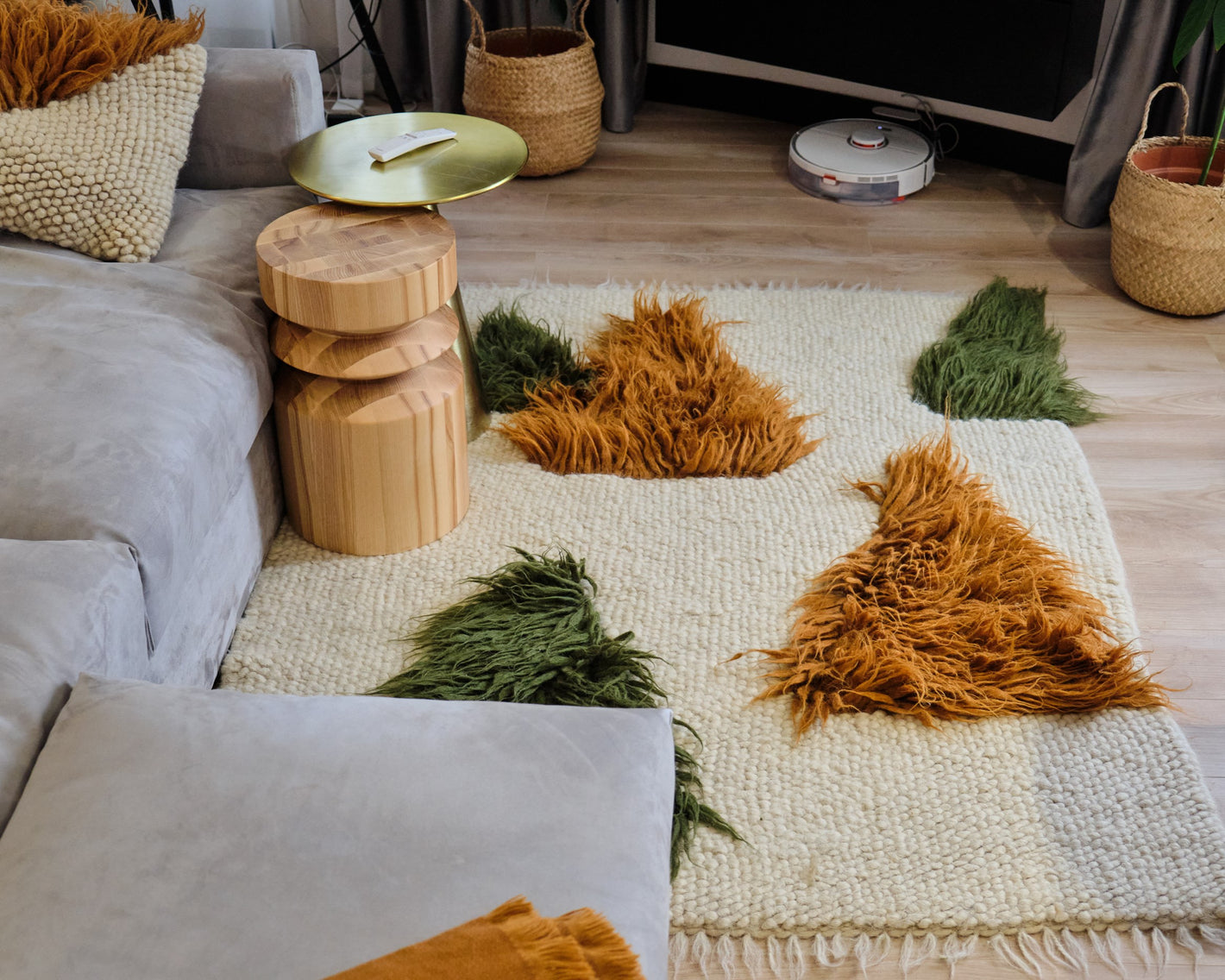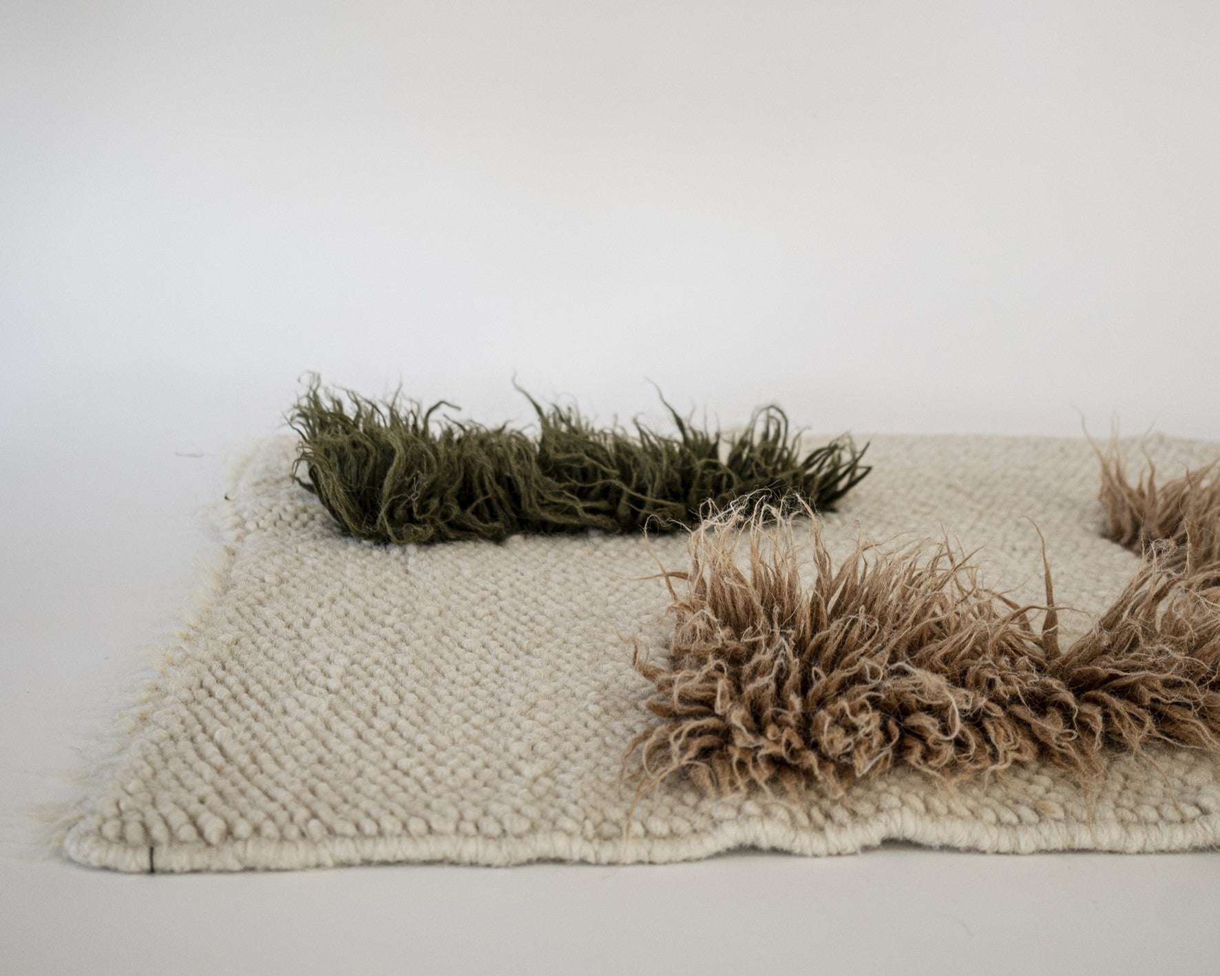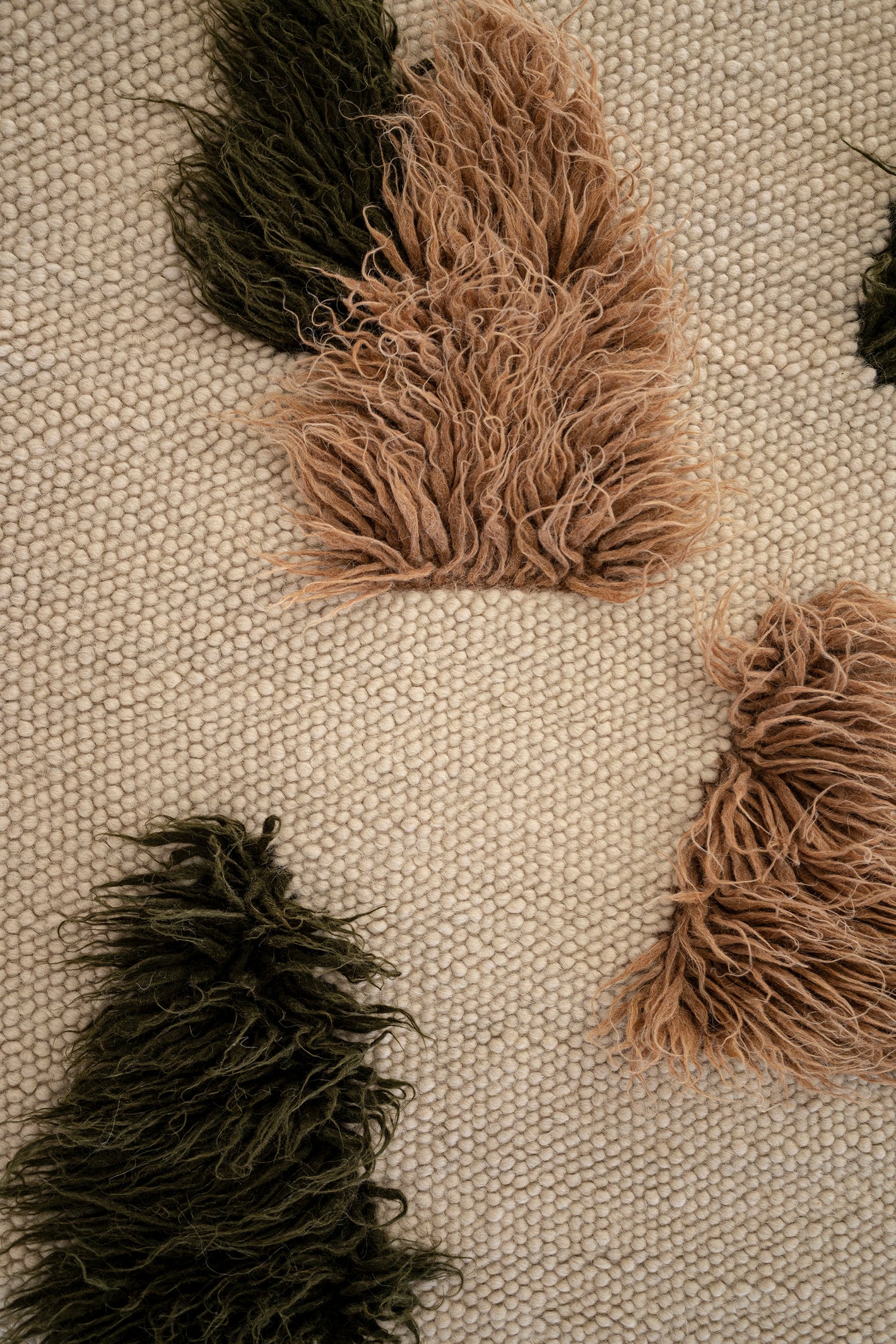 This is likely one of our most intriguing rugs, featuring a unique texture and visually captivating design. Inspired by mountain landscapes and meadows, the designer crafted a rug that will bring a distinctive touch to your room.