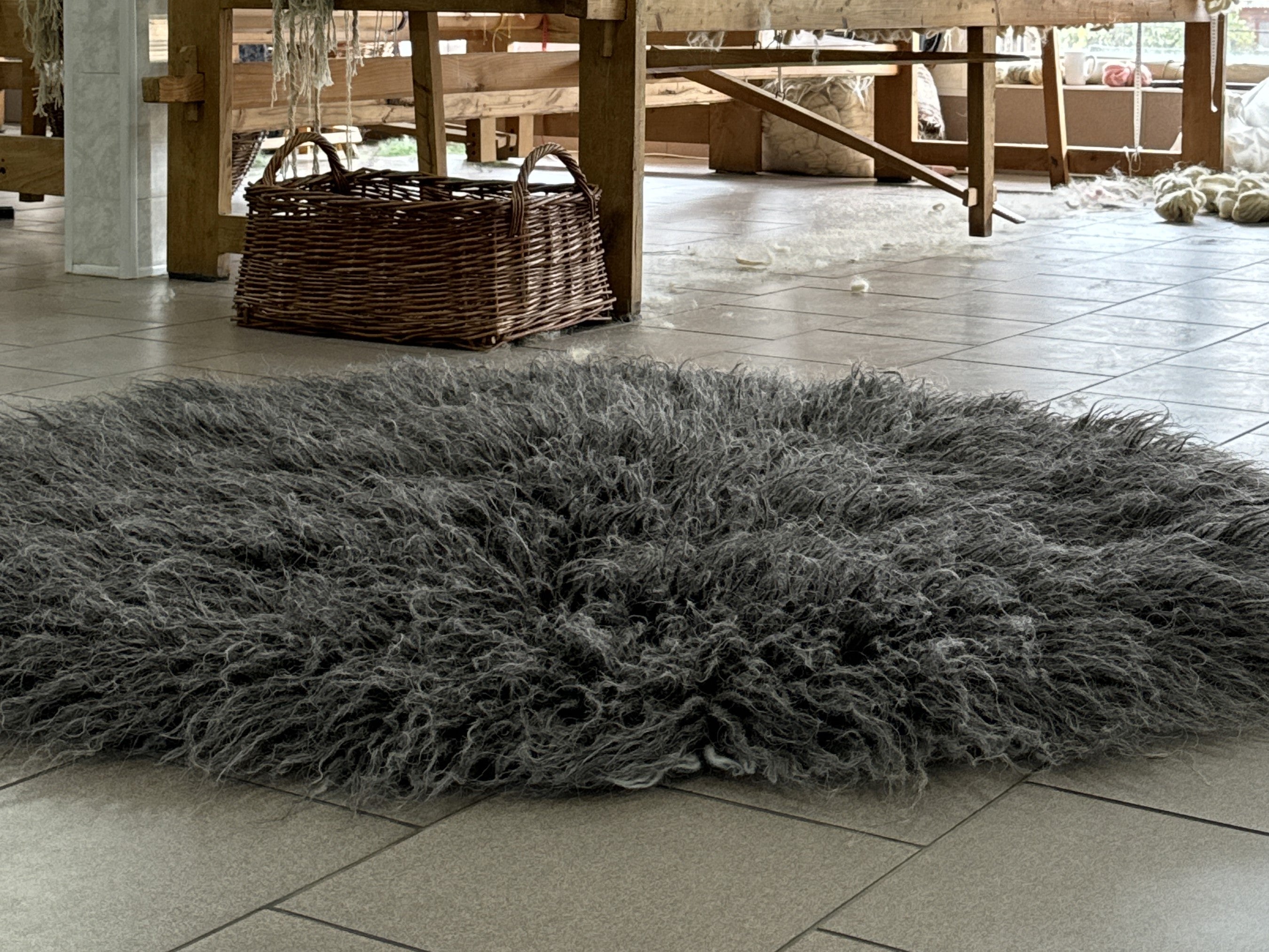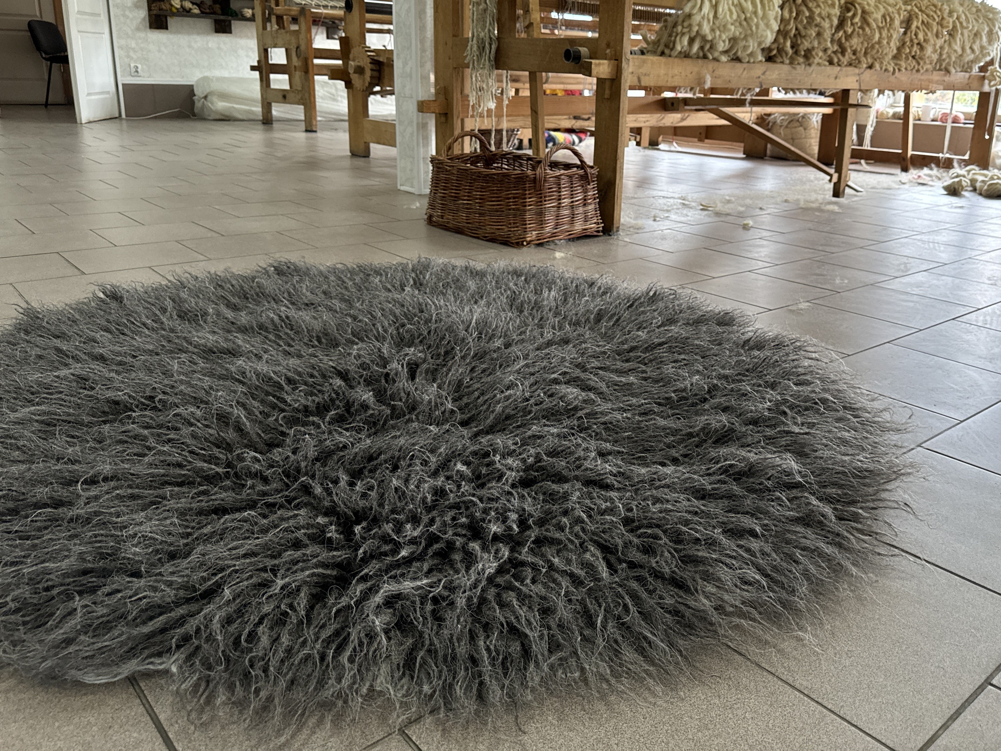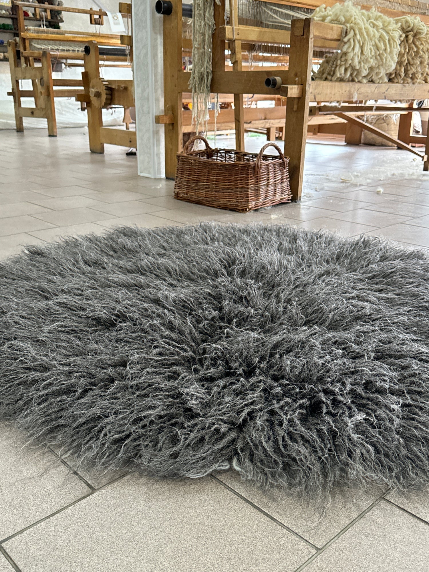 Introducing a 100% wool round rug with a soft, inviting texture that's perfect for sinking your feet into, whether it's a cold day or not. This cosy rug is made from the wool of three happy Carpathian sheep from Ukraine and can be custom-made to your preferred size and colour. Get in touch, and we’ll be happy to help create the perfect piece for you!