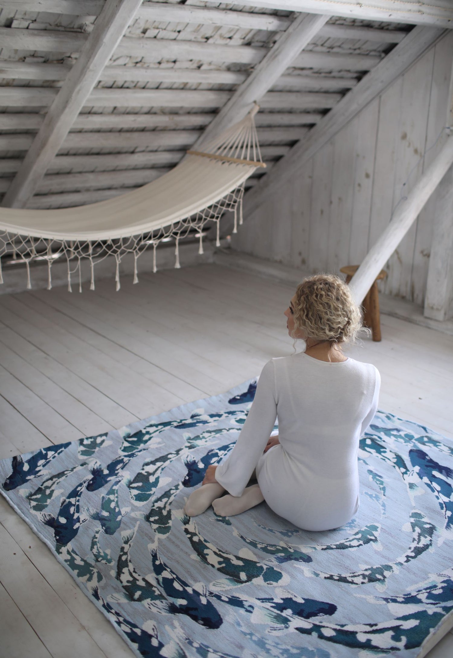 Illustrated by the talented Anika Moksunova, this rug embodies the whirlwind of life, the eternal dance of change and emotions. Like a mirror carp, it symbolizes confidence, vitality, and courage. Despite life's constant ebb and flow, we have the power to shape the direction of change.