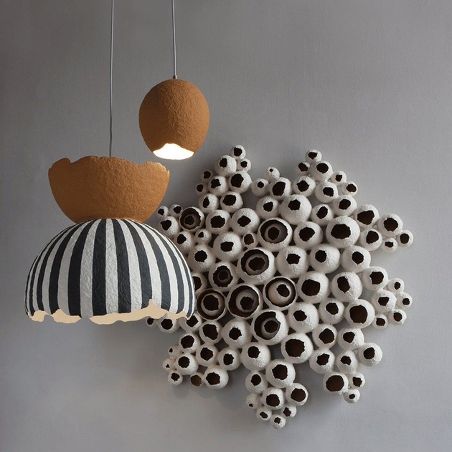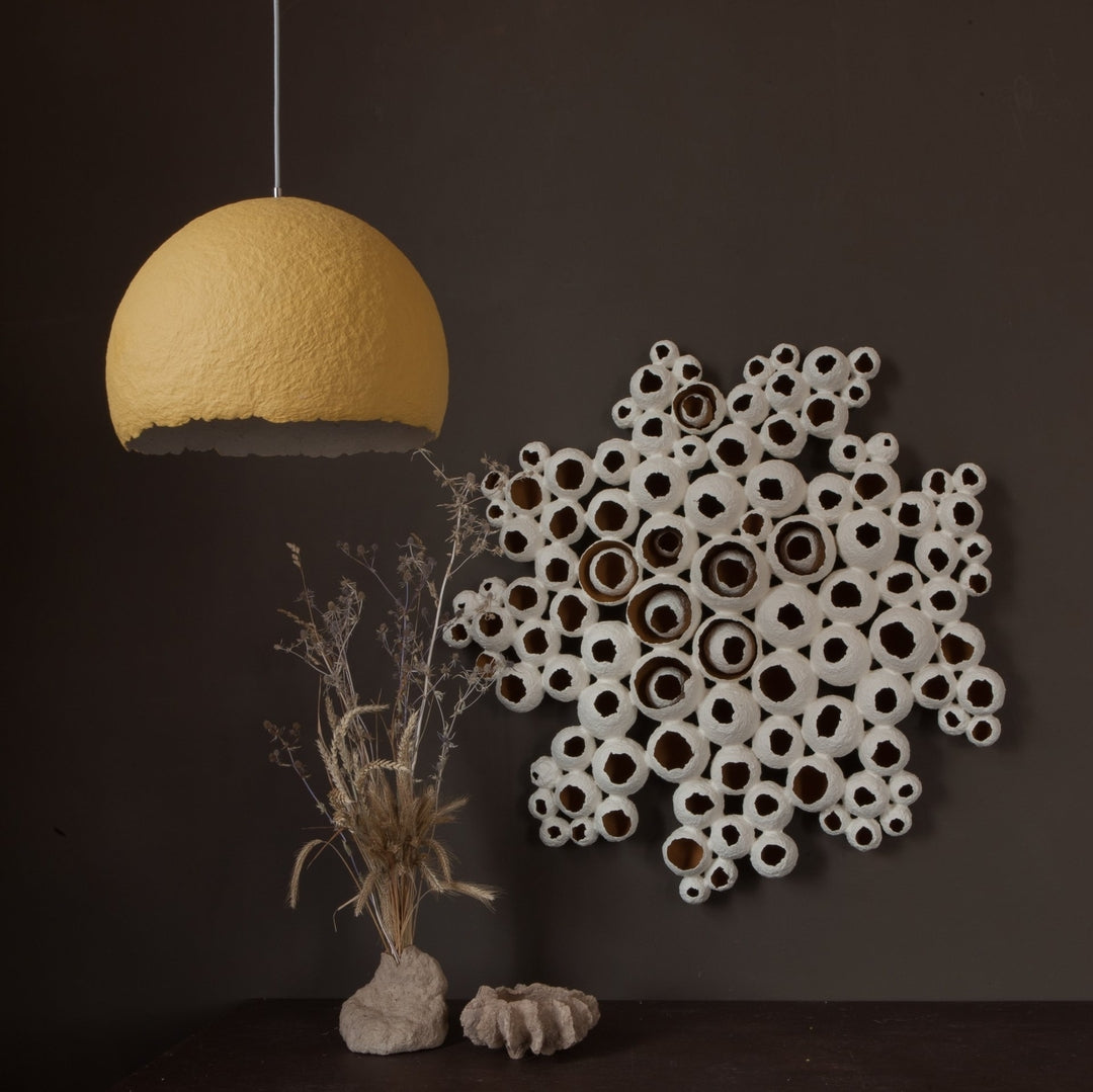 Crafted with precision, BAVOVNA is a sculpture panel made of cellulose using the papier-mâché technique. The result is a stunning work of art available in two sizes: 80 cm and 120 cm. Its sprawling form is delicately arranged to bestow an ethereal quality upon your space.