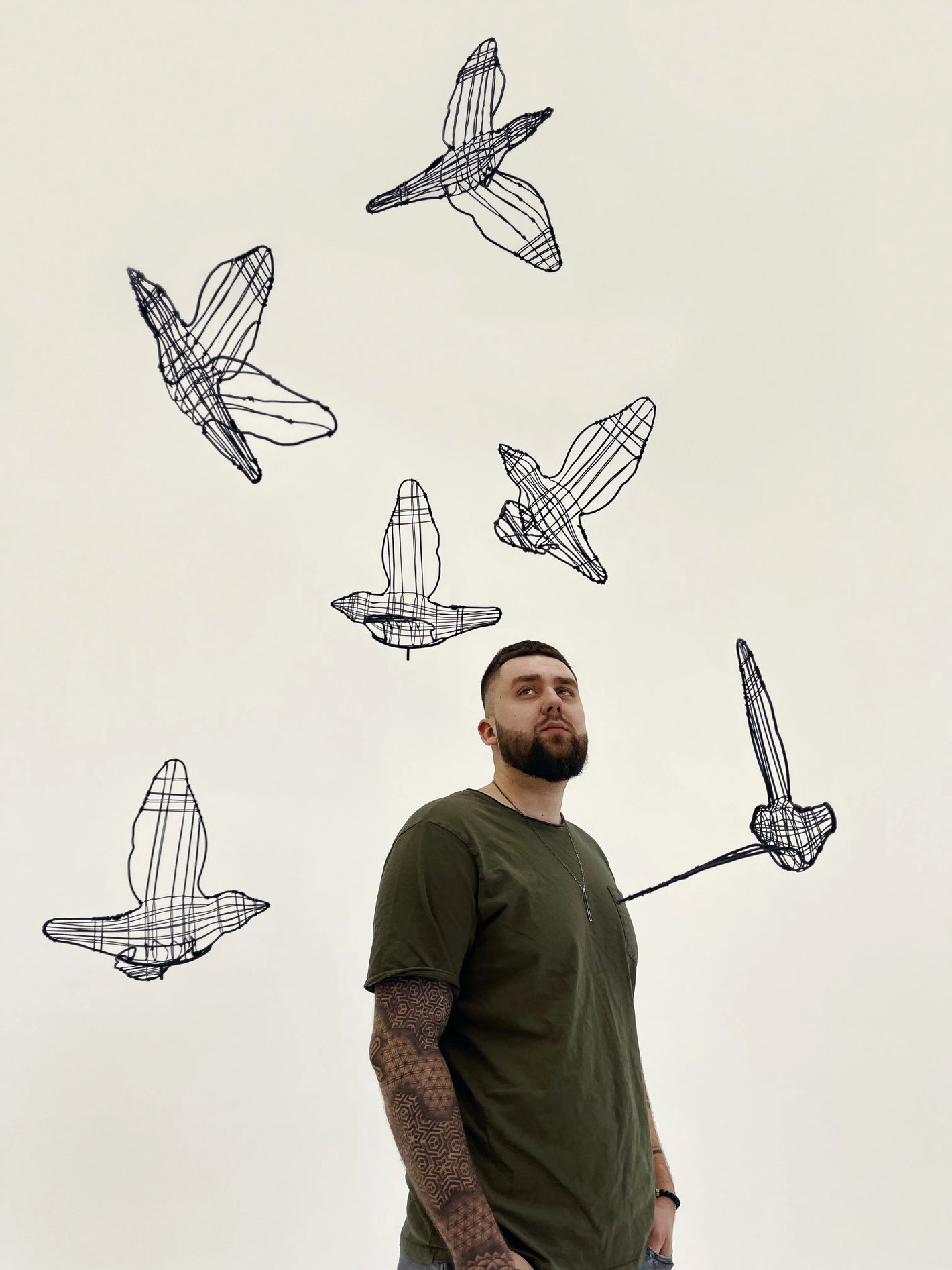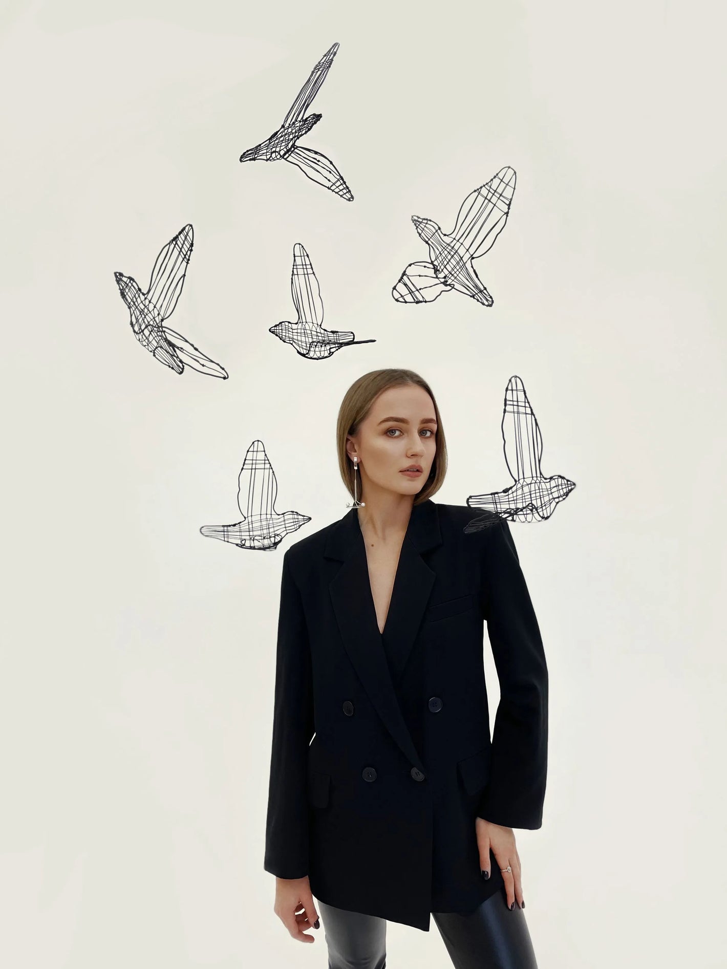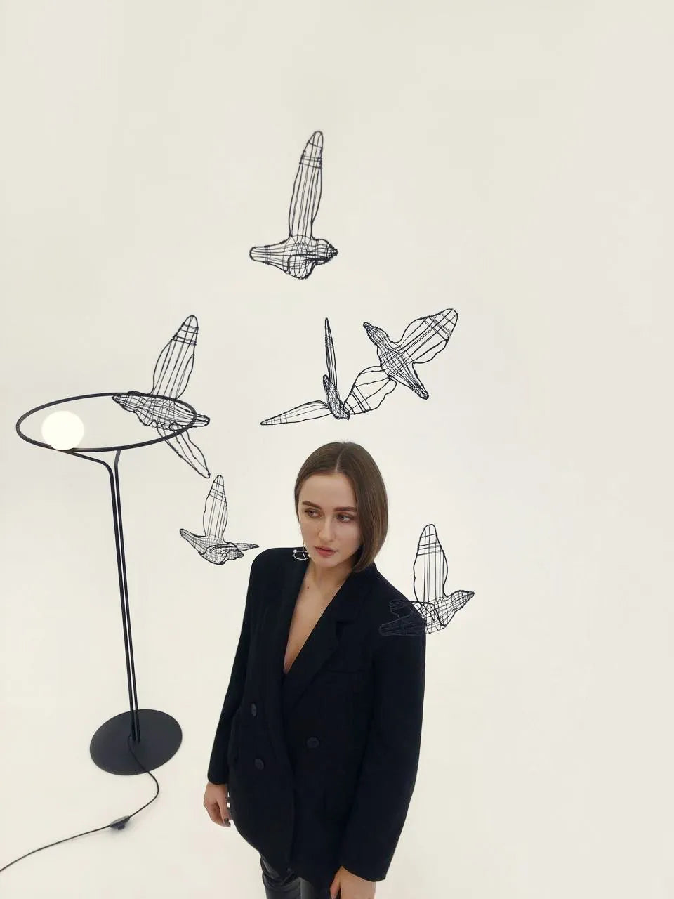 The set includes several birds in different sizes (a minimum of six), allowing you to create your own custom configuration on the wall. The elements are easy to mount and can be positioned at varying heights and rhythms. Each figure has a clean, graphic line characteristic of the Svitanok studio, which explores themes of light, shadow and spatial volume.