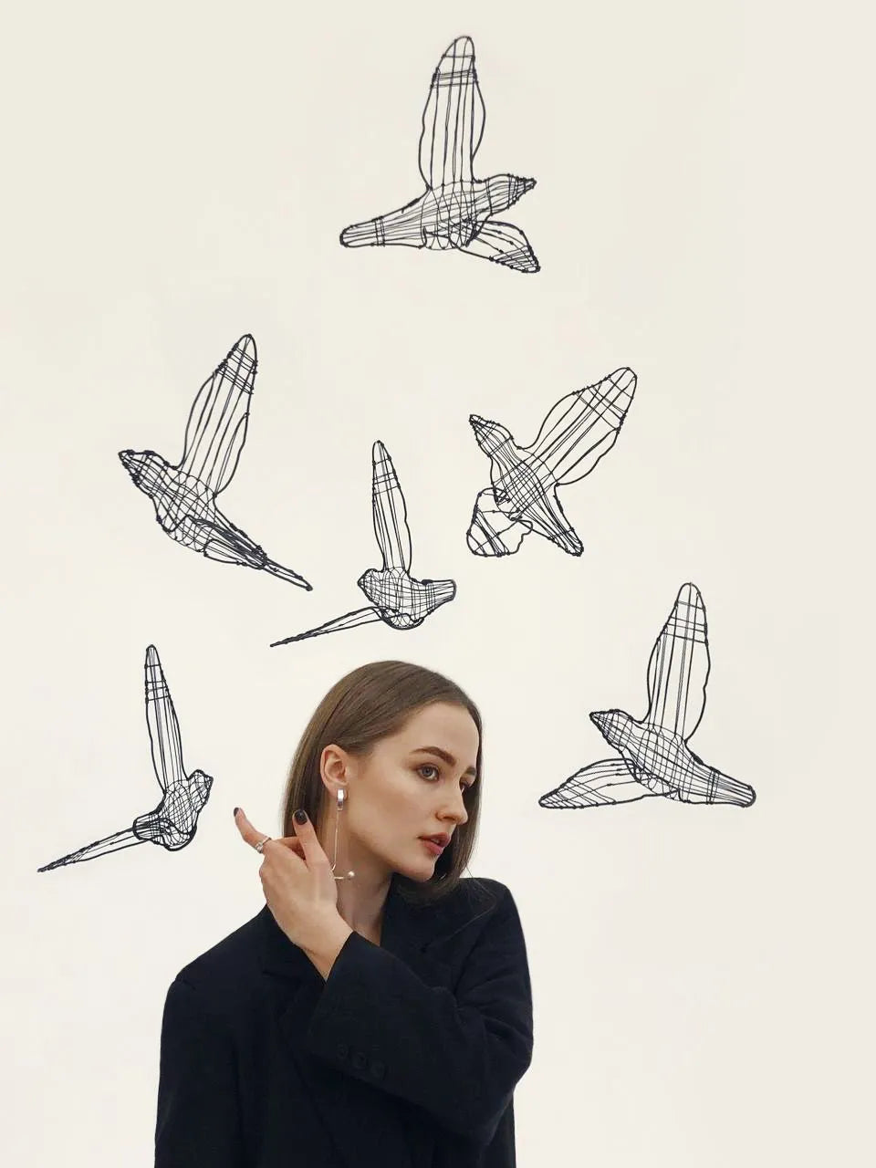 Flight Shadows is created as a decorative accent that introduces a sense of living movement into the interior. The metal contour interacts beautifully with light—different shadow effects appear throughout the day, allowing the composition to function as artistic wall accessories that enhance the architectural character of the wall.