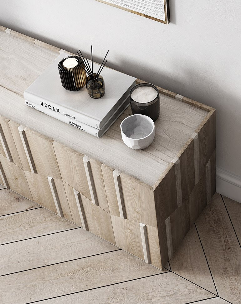 Whether paired with the captivating Oblique wall panels or used as an eye-catching individual piece, Oblique Sideboard brings an air of sophistication and functionality to your home.