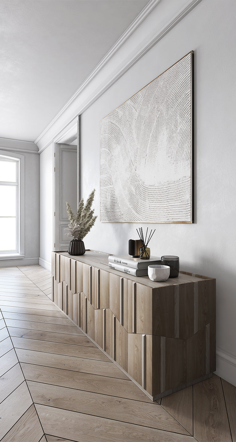 The Oblique Sideboard comes in a choice of varnish or oil coating, allowing you to customize its finish to suit your interior aesthetic. Artistic toning further enhances its beauty, adding depth and character to the design.