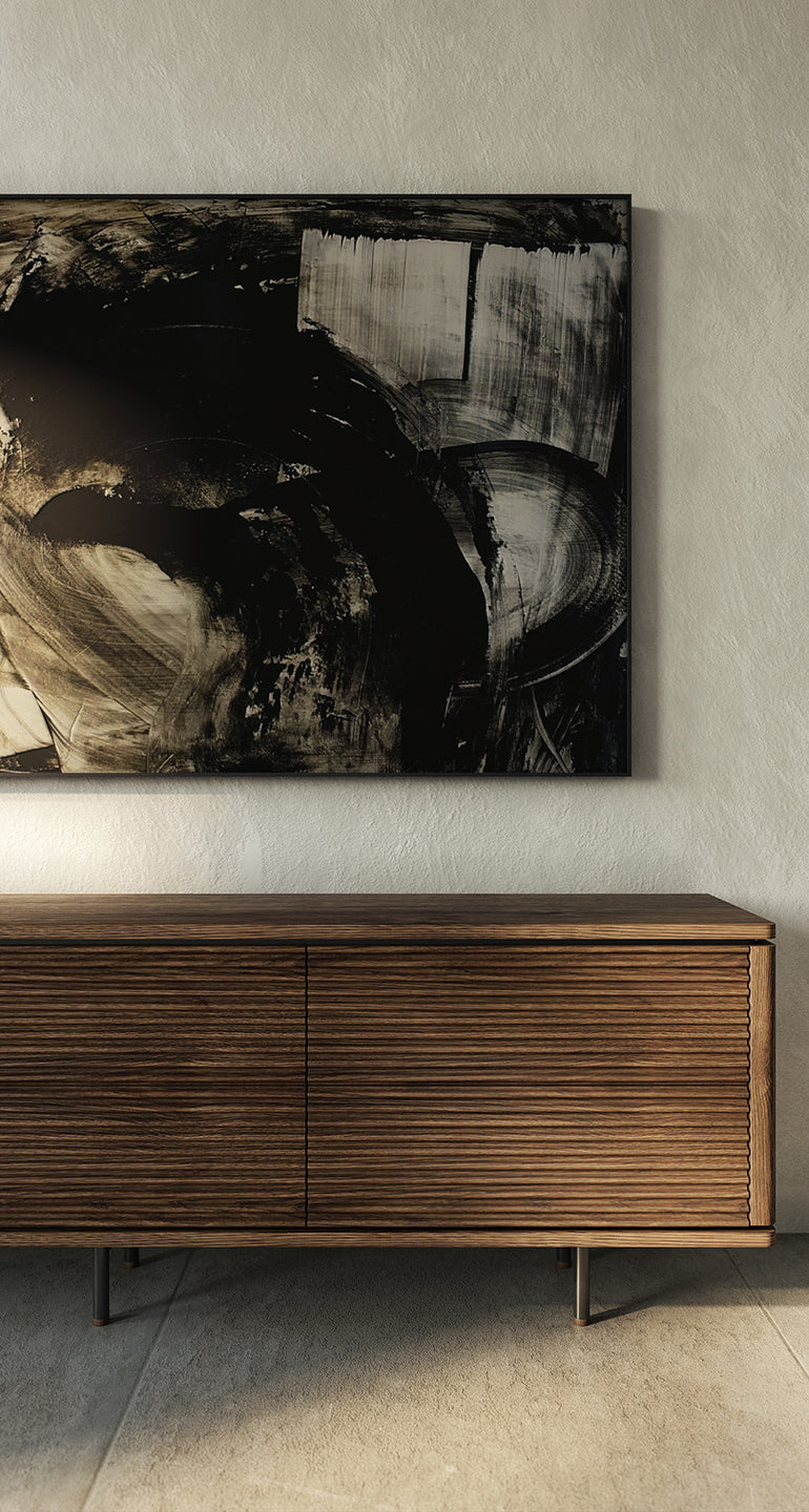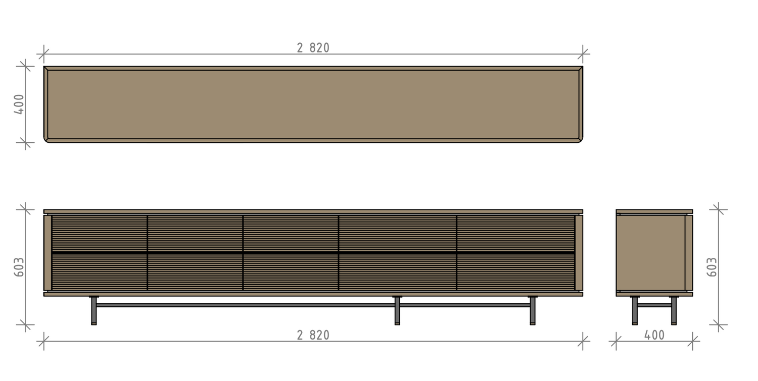 Designed to be a real decoration of your interior, the SideLine sideboard exudes elegance and sophistication. The standard dimensions (H / W / D): 400/2820/603 mm are thoughtfully created to fit seamlessly into various spaces. However, we understand that every customer's needs are unique, and we offer the flexibility of custom sizing. Let us tailor the SideLine sideboard to your specific dimensions, ensuring it perfectly complements your interior layout.