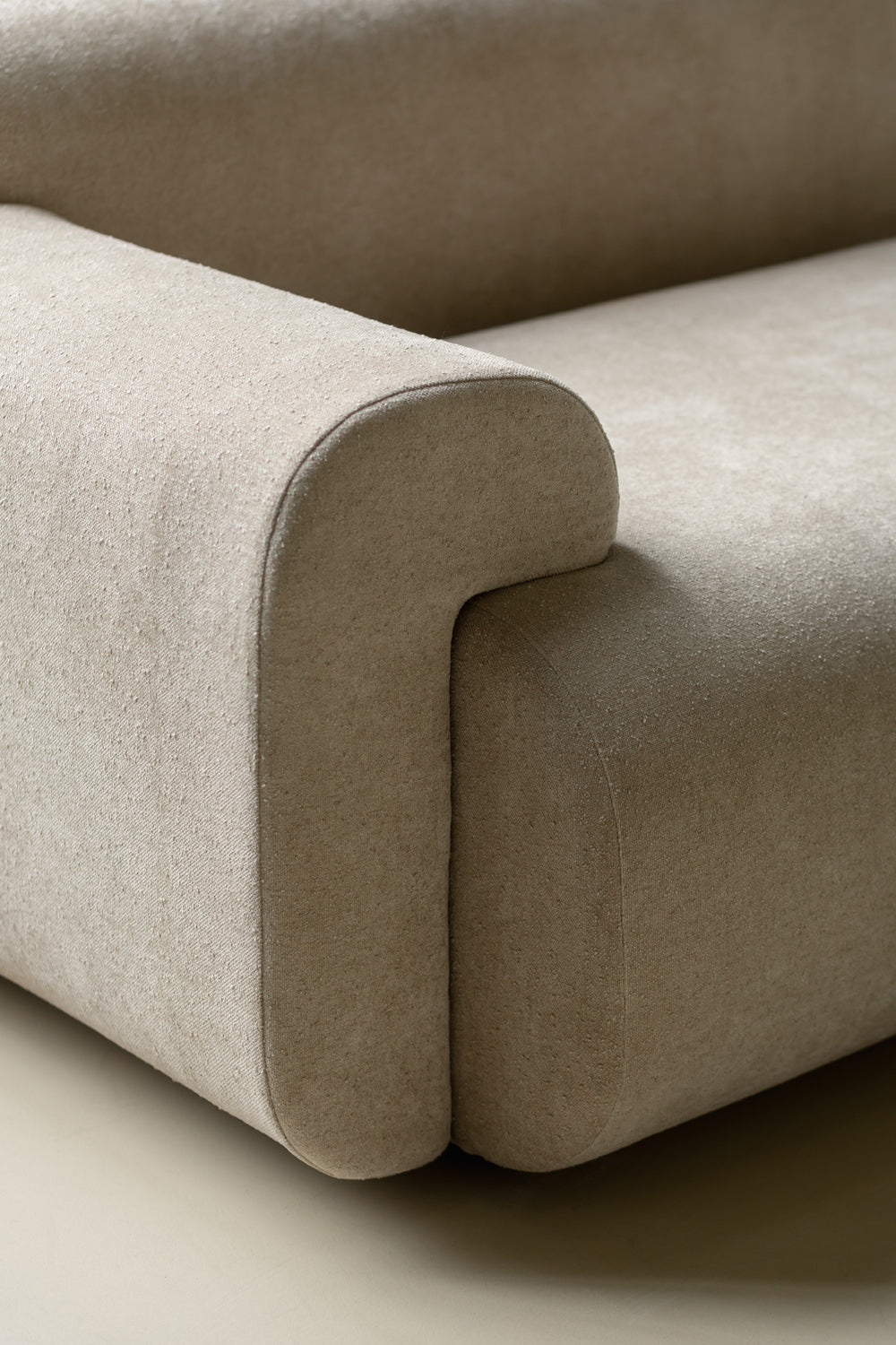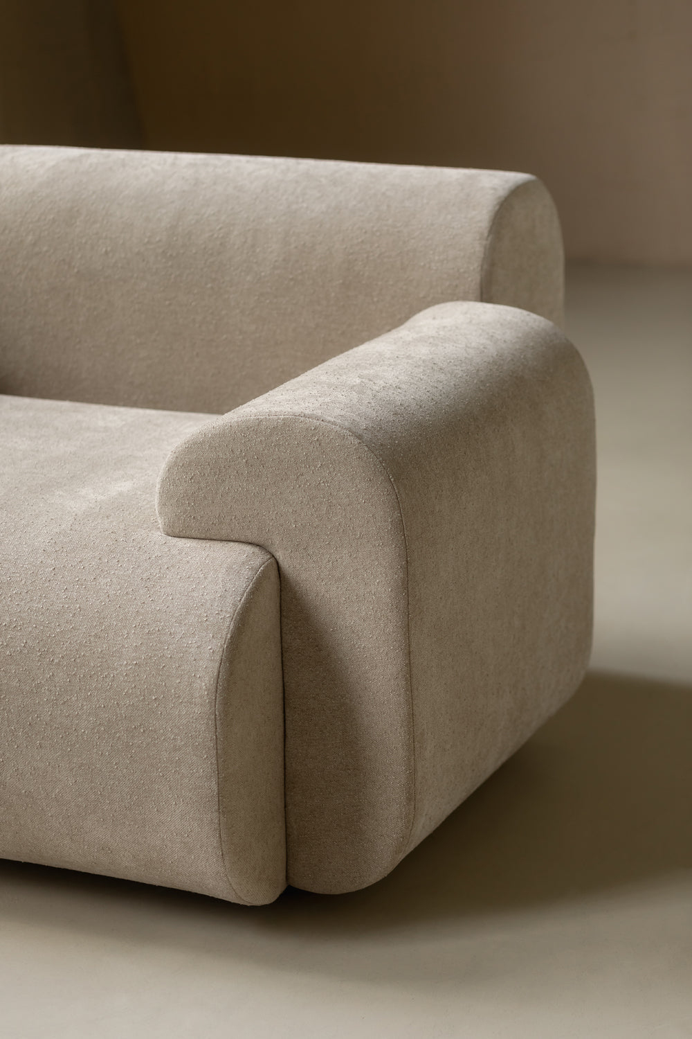 The Sigga M1 Lounge Chair is a sculptural upholstered armchair from the Sigga collection by Kint, designed as part of a cohesive family of modular soft furniture that includes sofas and lounge chairs. The design is defined by minimalist rounded forms, a deep, inviting seat and wide armrests, giving the chair both presence and comfort in architectural interiors.