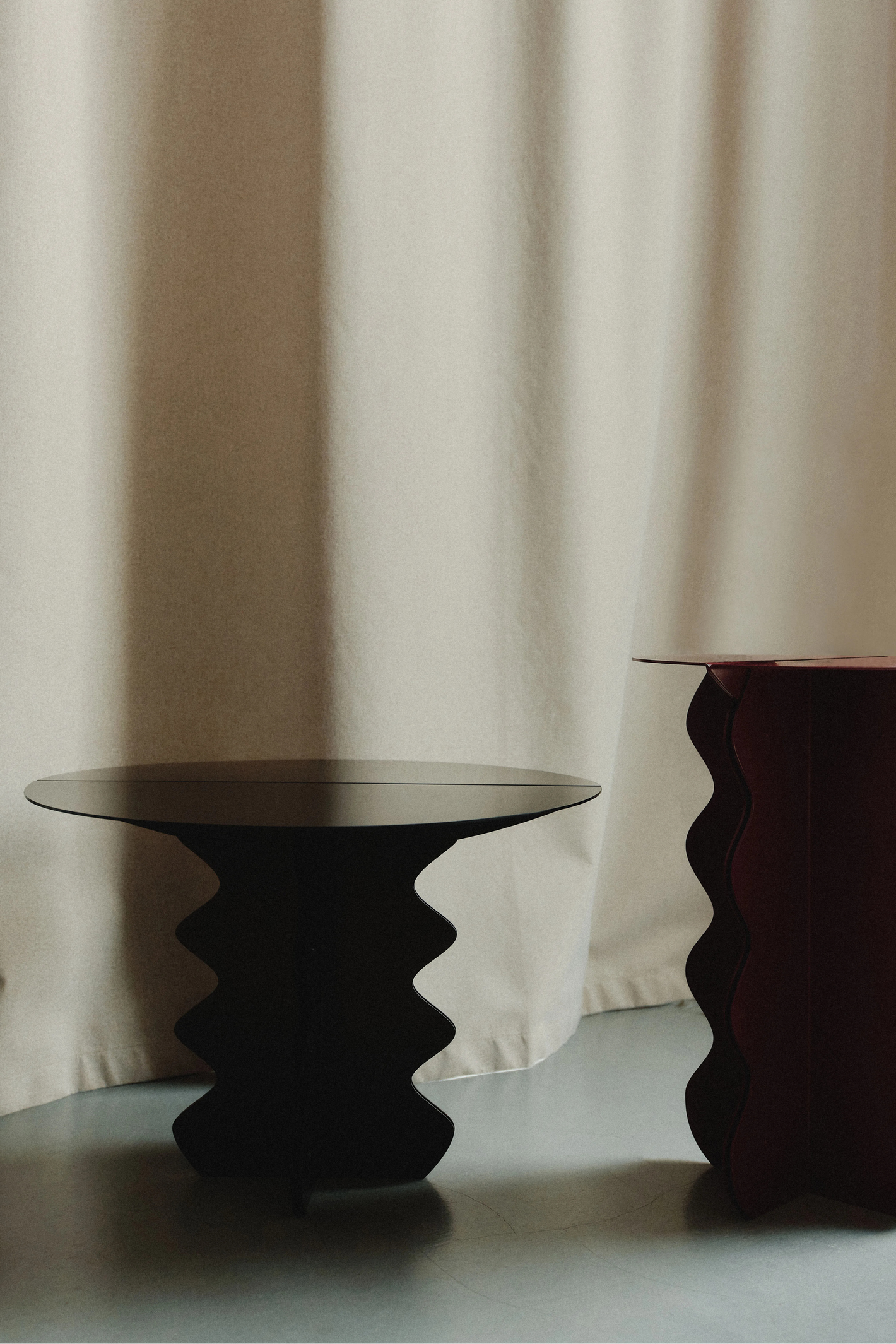 The Hvylya round coffee table with a sculptural, wave-inspired form that brings a clear visual rhythm to any interior. Designed by Julia Kononenko, it functions as both a contemporary coffee table and a distinctive statement piece with a focus on clarity and practical elegance.