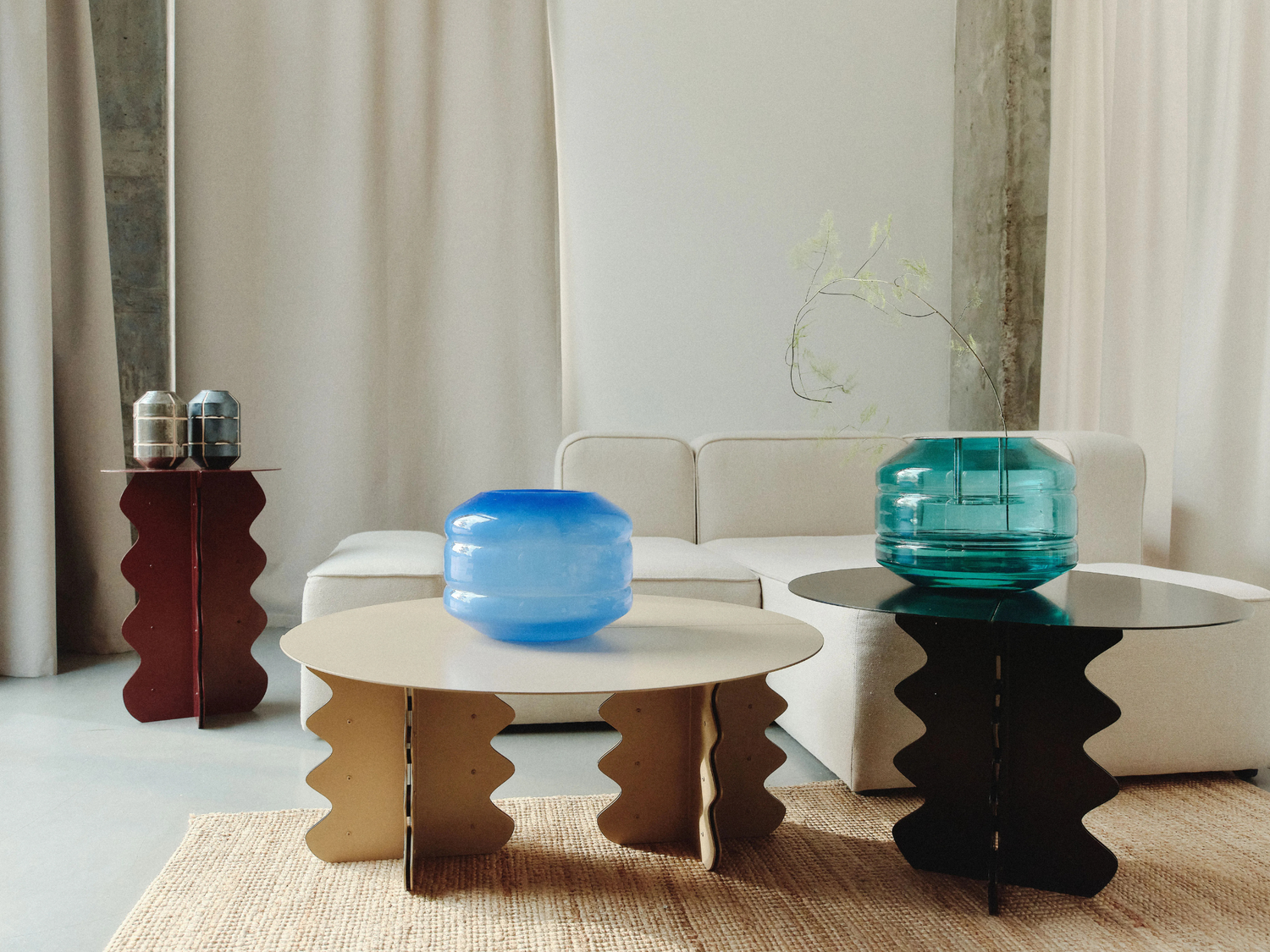 The Hvylya tables comes in three different sizes and a curated palette of colours: Blue, White, Beige, Olive, Black, Ultramarine Blue, and Wine Red. You can also request your own custom colour, ensuring the table fits your interior perfectly.