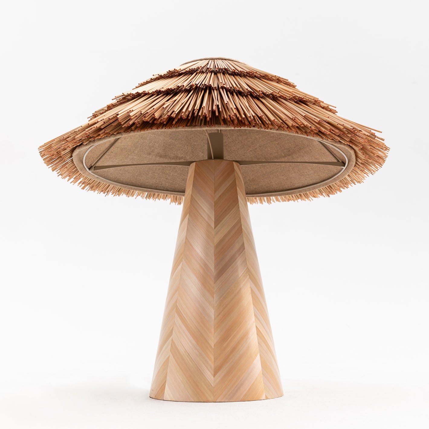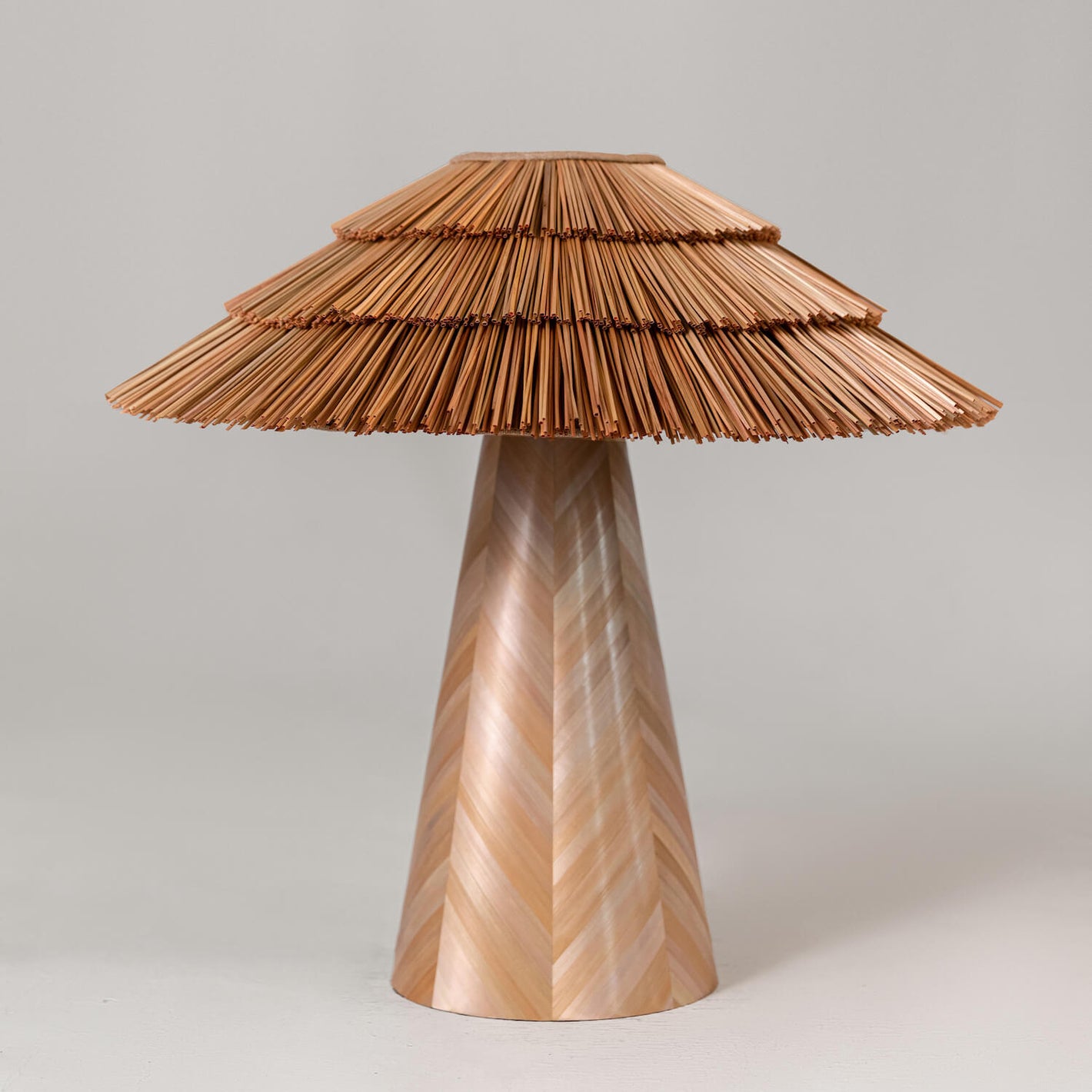 This modern design meets the nostalgic charm of an ancient Ukrainian homes in a mesmerising ROOTS OF HOME table lamp. The lampshade resembles a traditional roof with terraced straw, skilfully crafted using an ancient technique.