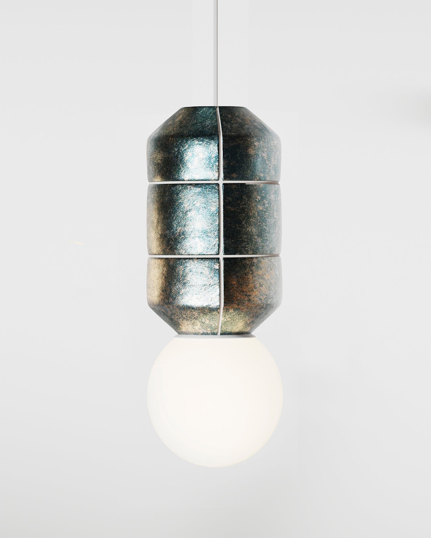 Crafted with meticulous attention to detail, the NAVAZI vertical pendant lamp features a ceramic base and a captivating glass sphere. The ceramic base is available in a range of exquisite finishes, including white opan, ceramics gasoline, ceramics blue, ceramics anodized, ceramics copper, ceramics white, ceramics black, and ceramics rainbow. This allows you to select the perfect color to complement your decor and add a touch of personalized style to your space.
