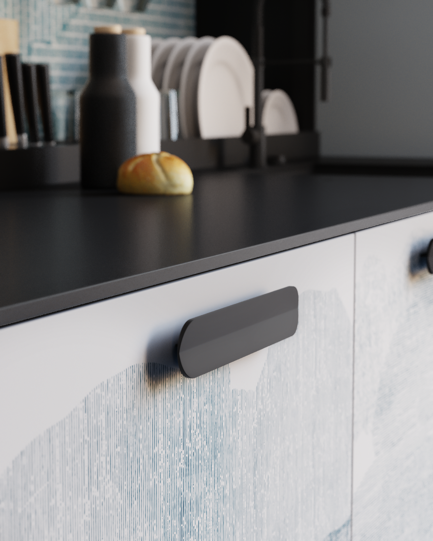 Printing on the MDF facade with a protective coating to ensure long-lasting durability and resist visible fingerprints, keeping your kitchen looking pristine.