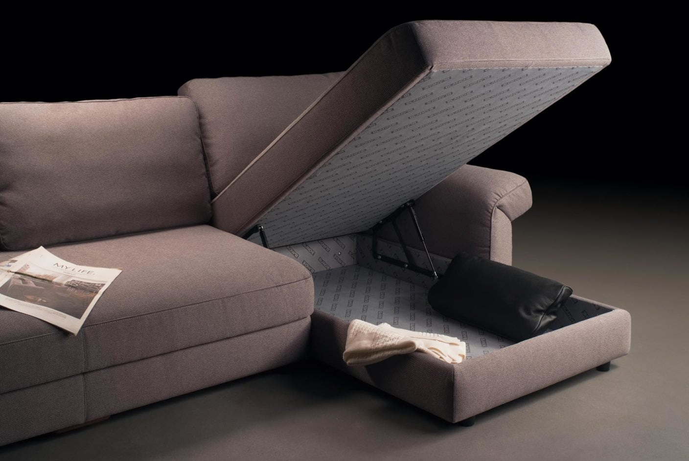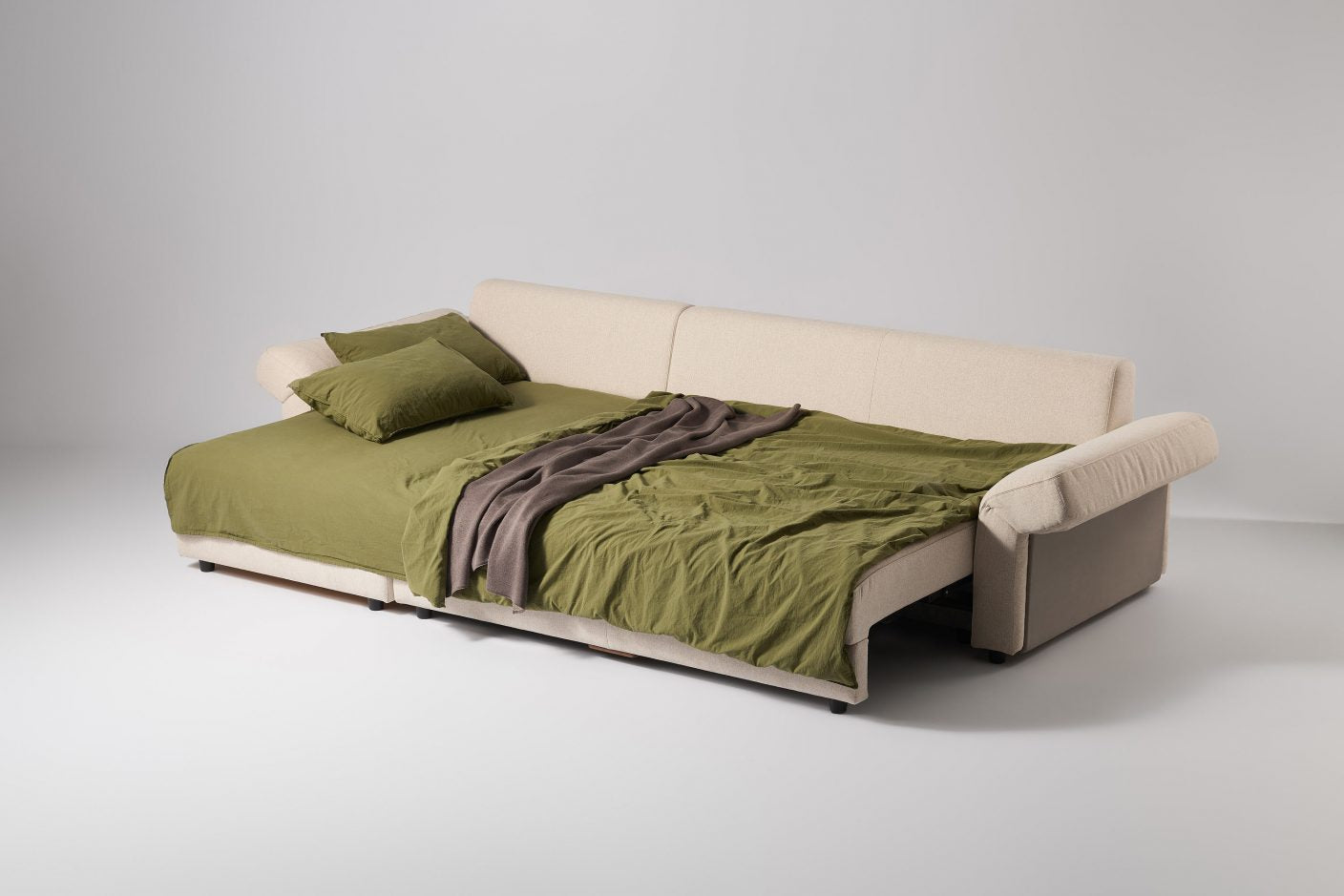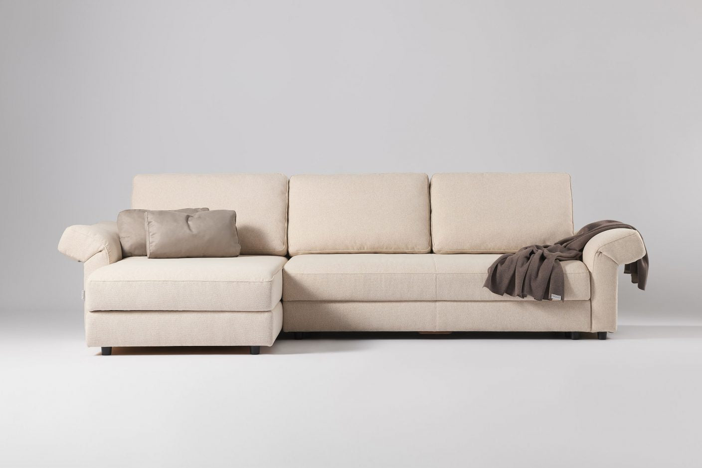 Equipped with a convenient Puma mechanism for daily sleep, the CLIFF sofa effortlessly transforms into a comfortable bed, making it perfect for overnight guests. Additionally, the corner configuration includes a spacious niche for storing linens, keeping your living space tidy and organized.