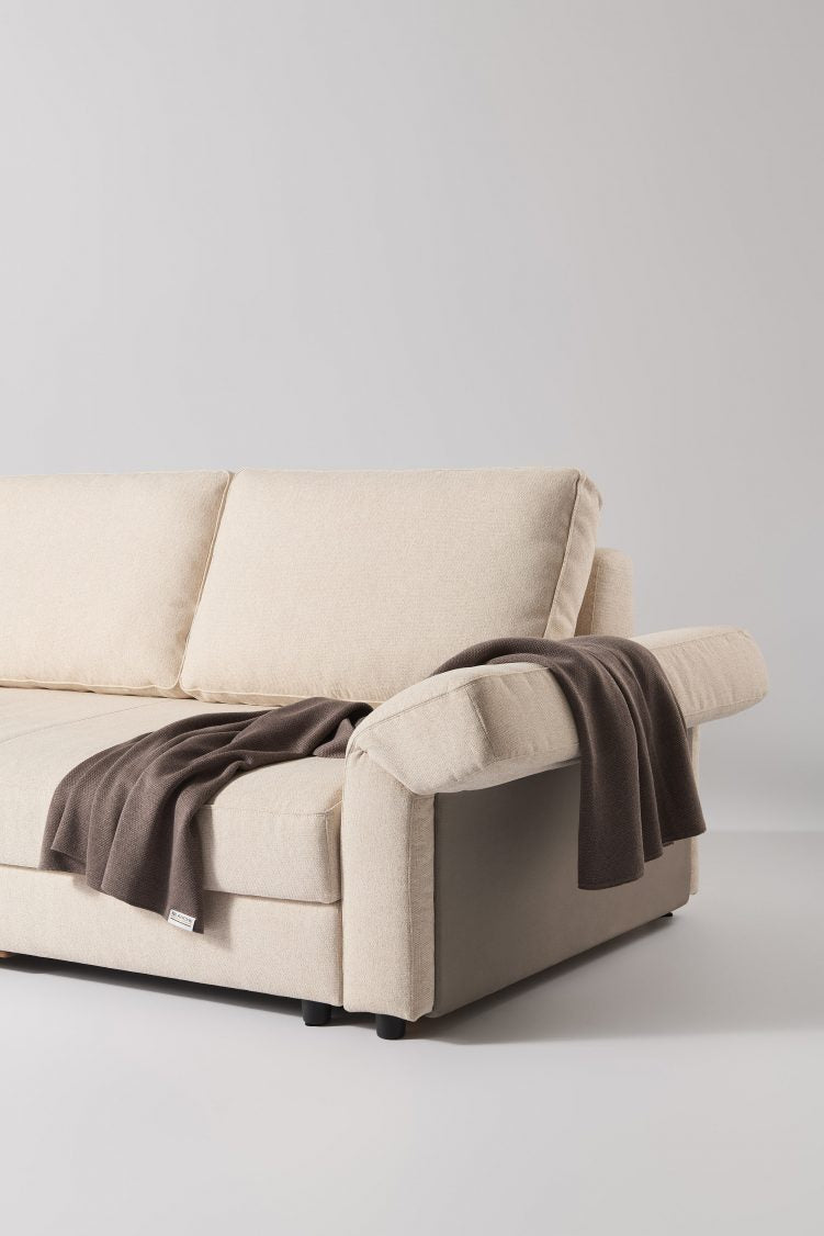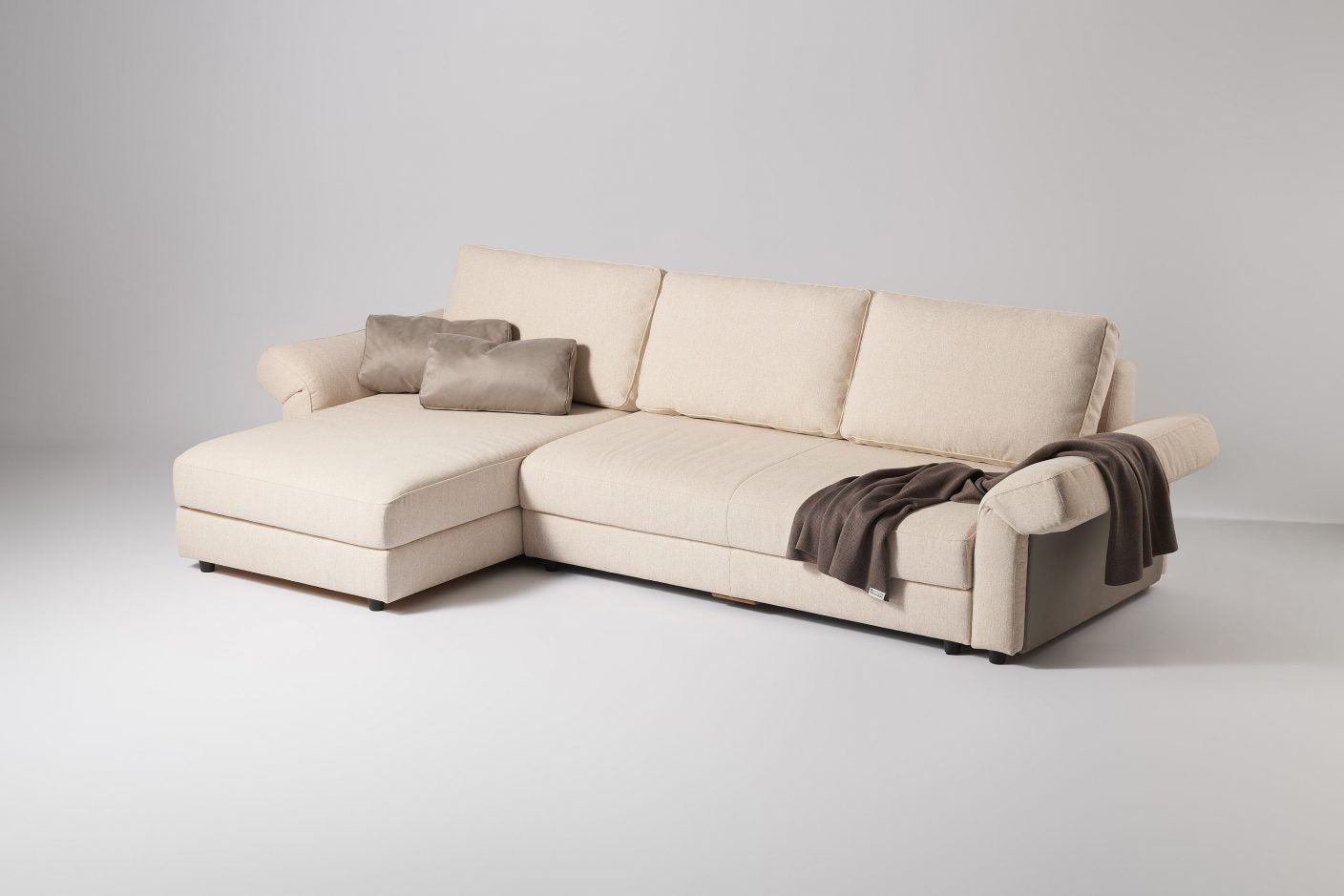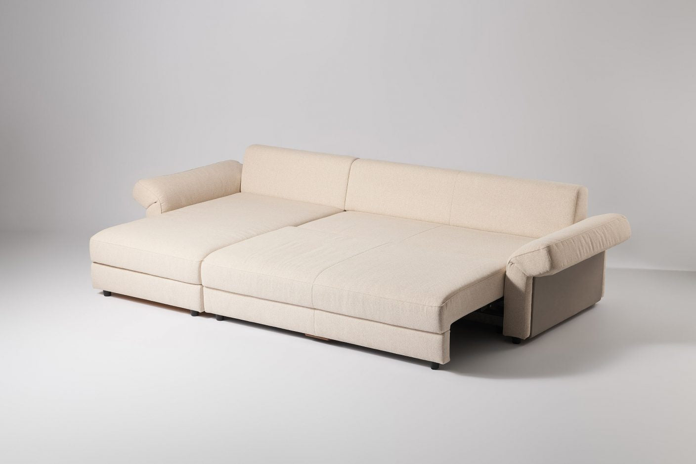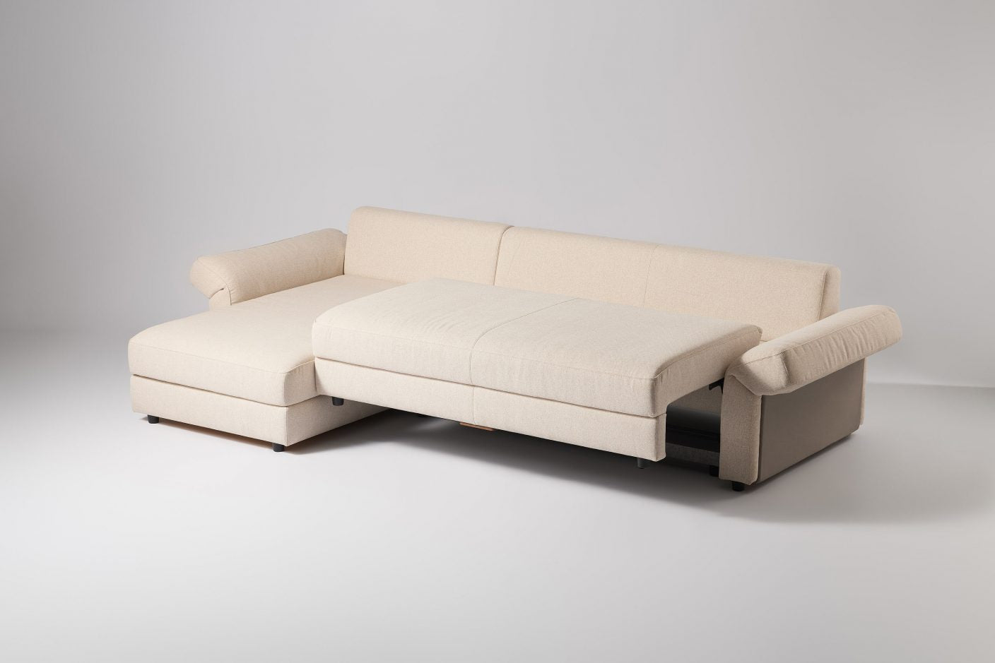 Equipped with a convenient Puma mechanism for daily sleep, the CLIFF sofa effortlessly transforms into a comfortable bed, making it perfect for overnight guests. Additionally, the corner configuration includes a spacious niche for storing linens, keeping your living space tidy and organized.