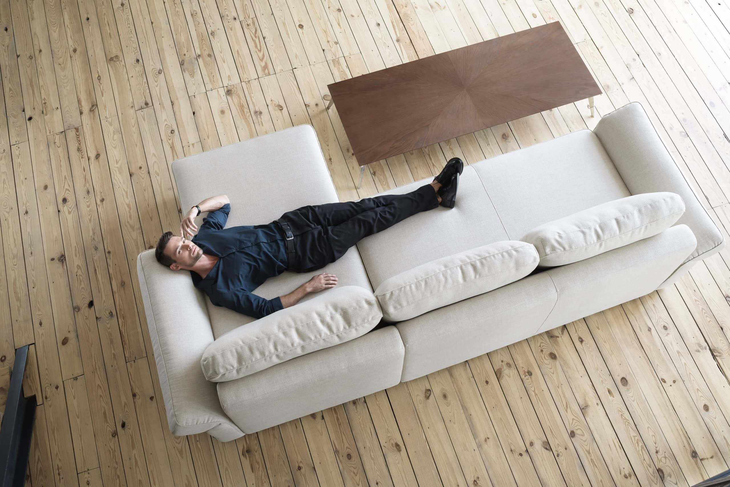 The unique design of the CLIFF sofa, meticulously thought out to the smallest detail, offers not only comfort but also aesthetic pleasure. The elegant curved armrest, supported by a distinctive metal structure, adds a touch of sophistication and style to any room.
