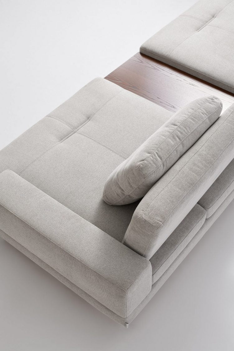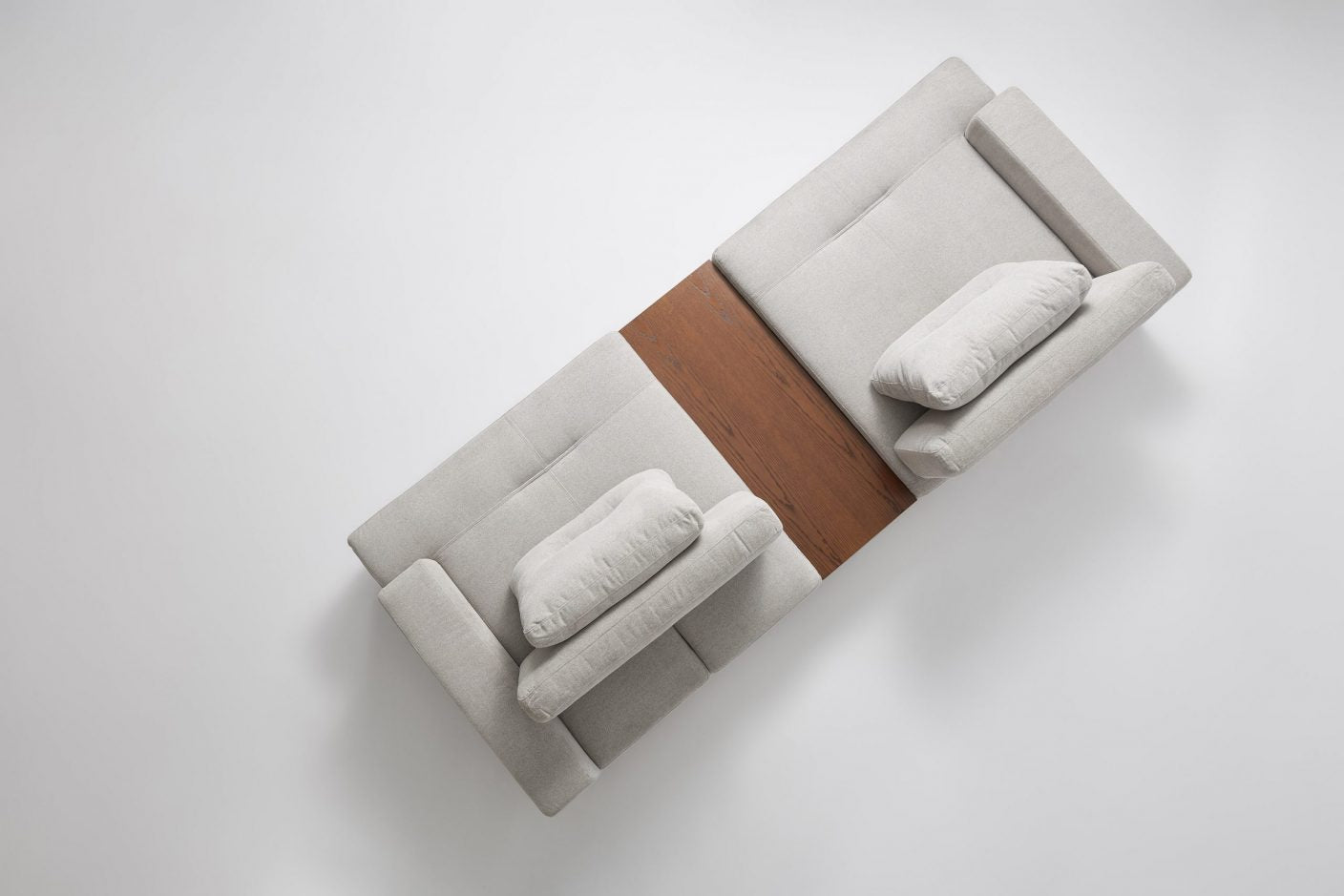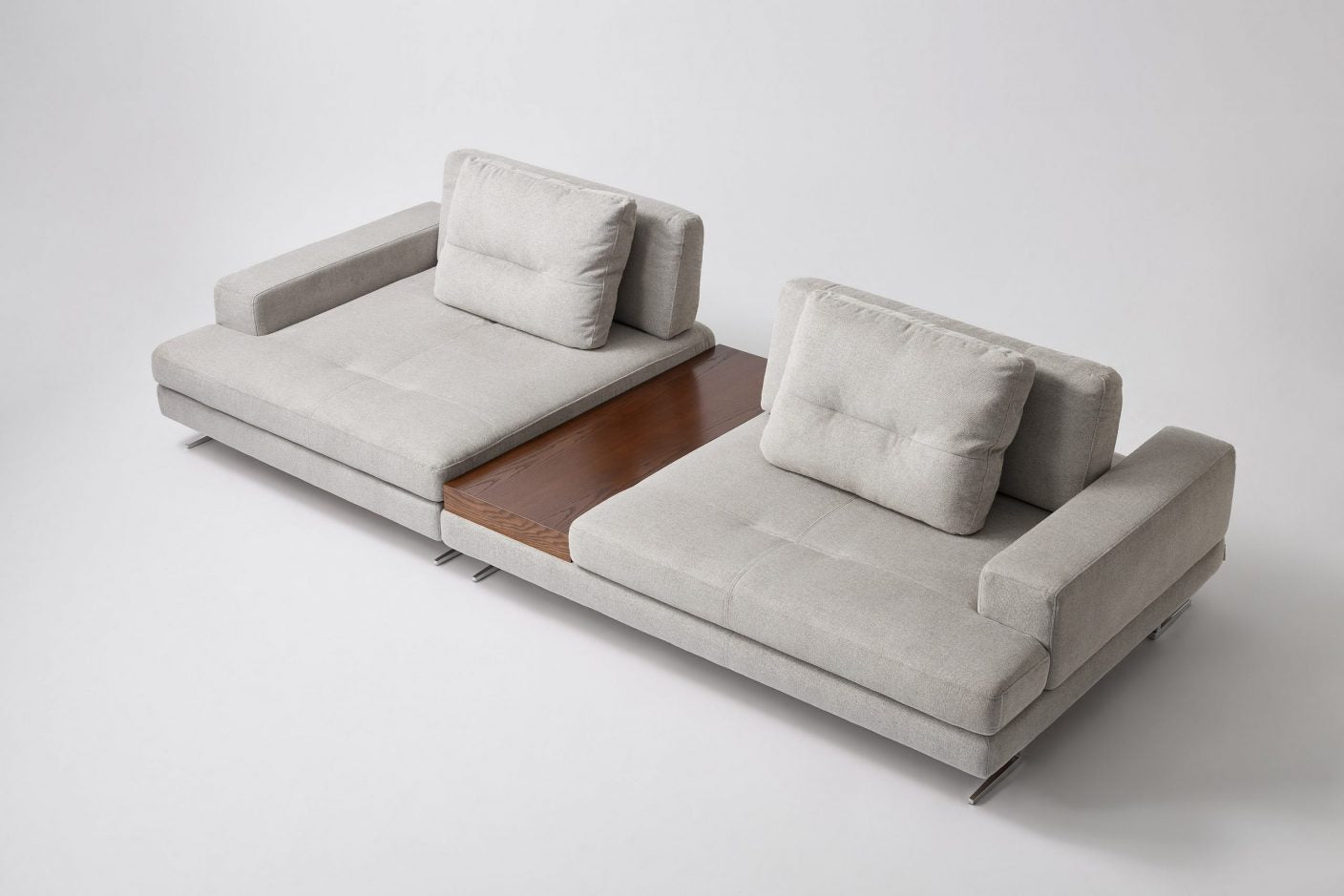 This sofa features an elegant yet simple design, with a unique twist thanks to the integrated table, which is in configuration of two-seater sofa with a table.