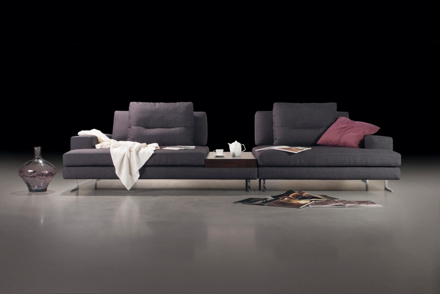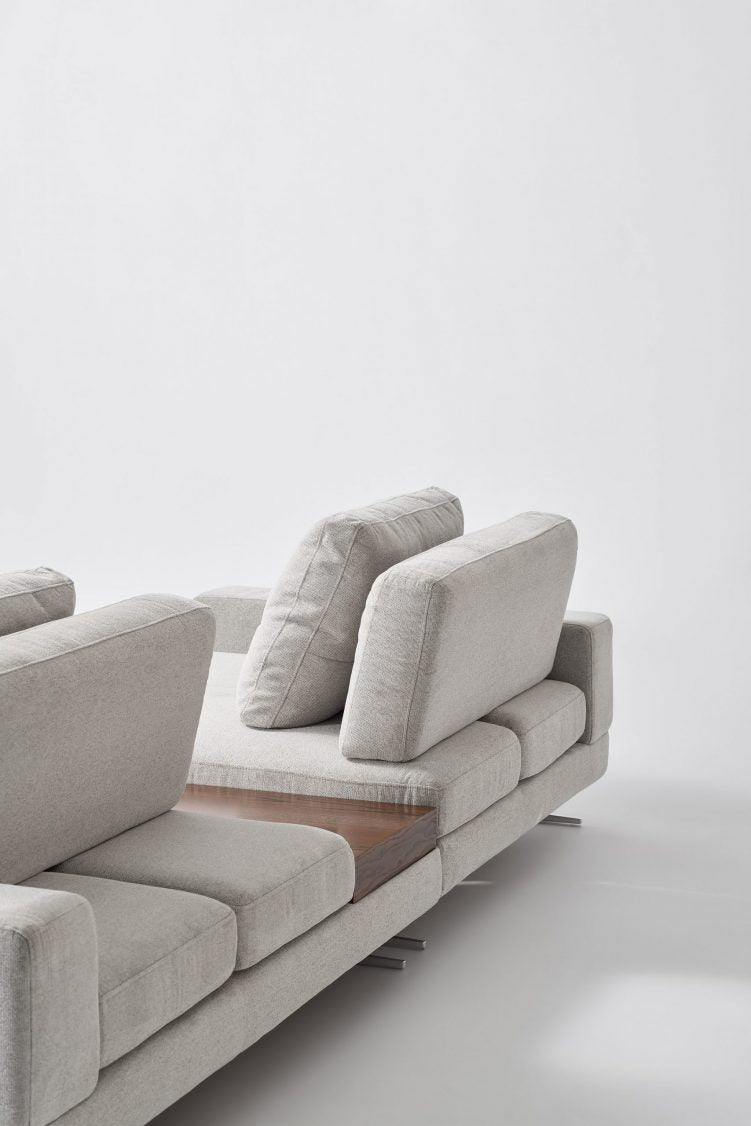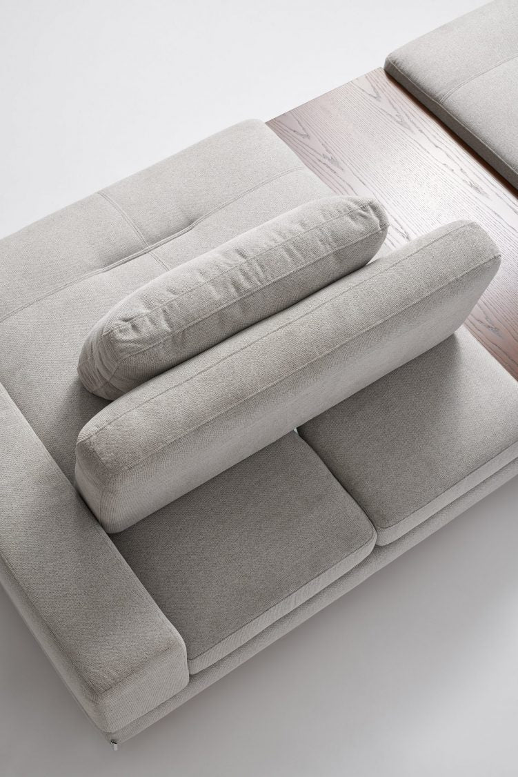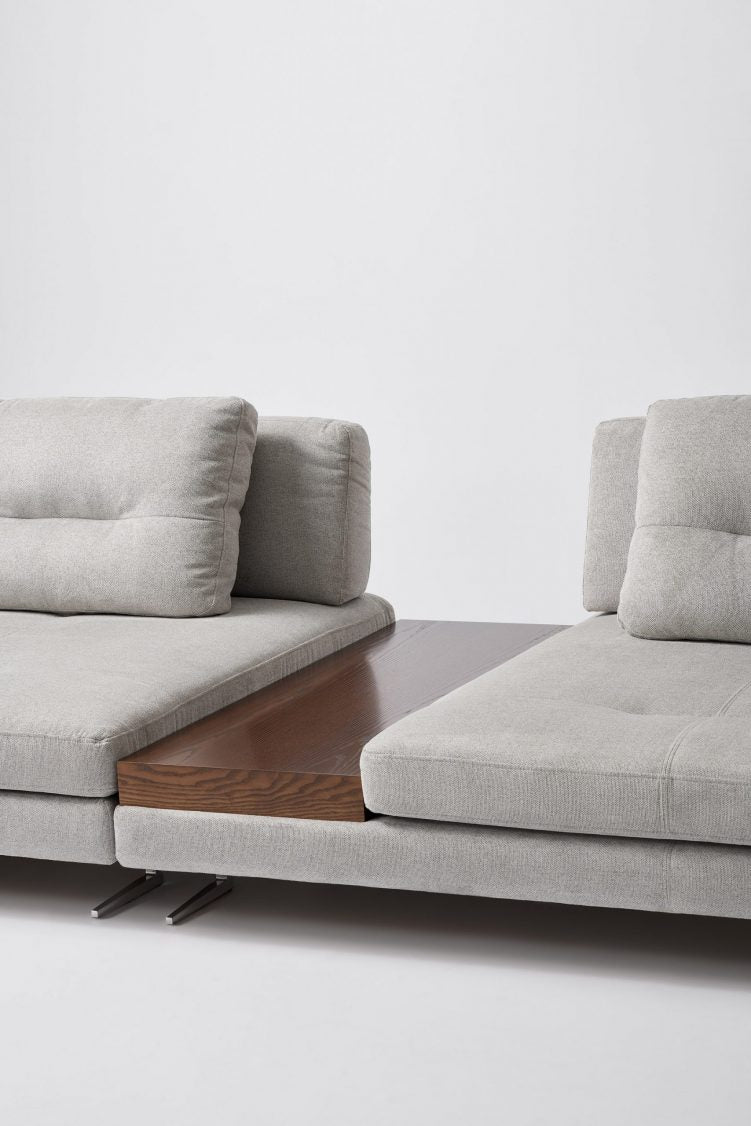 This sofa features an elegant yet simple design, with a unique twist thanks to the integrated table, which is in configuration of two-seater sofa with a table.