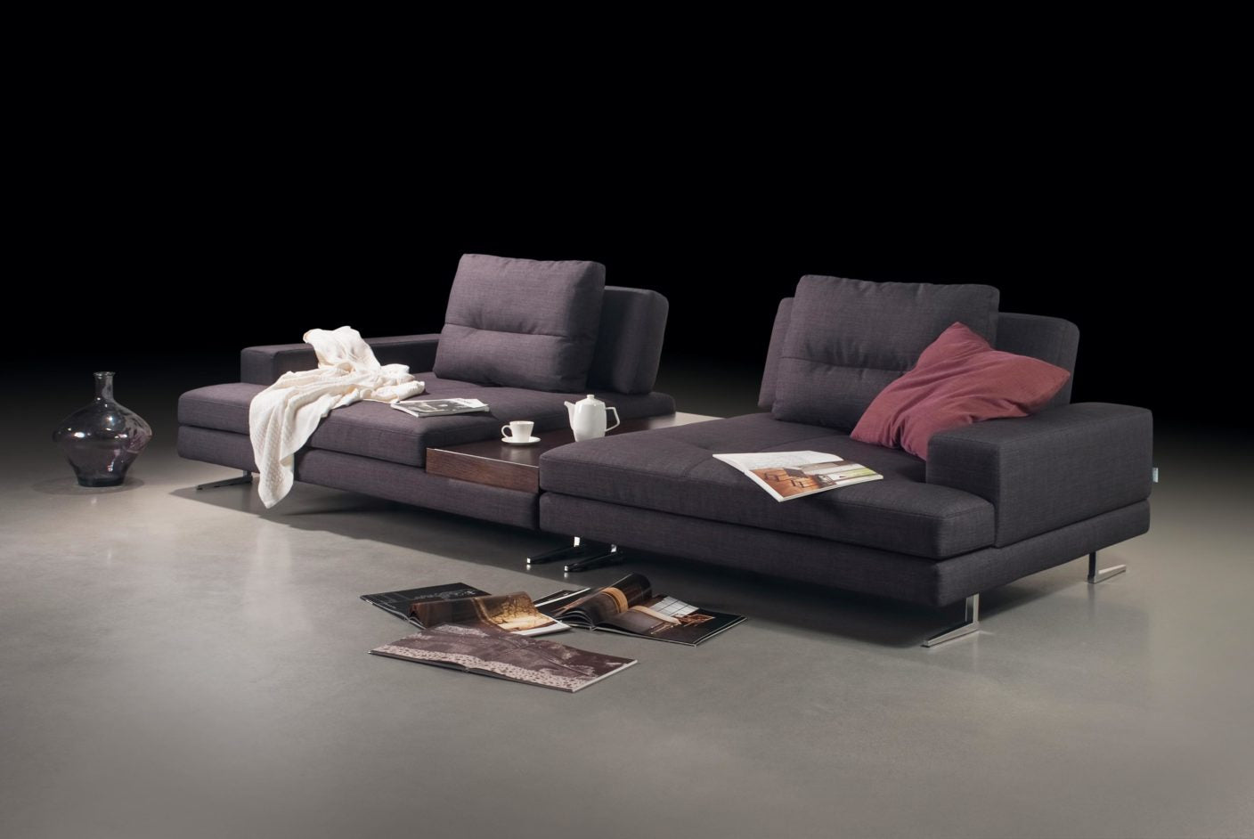 This sofa is made of two modules: a module with an armrest right and a module with an armrest left / a module with an armrest right and a module with an armrest left with a table.