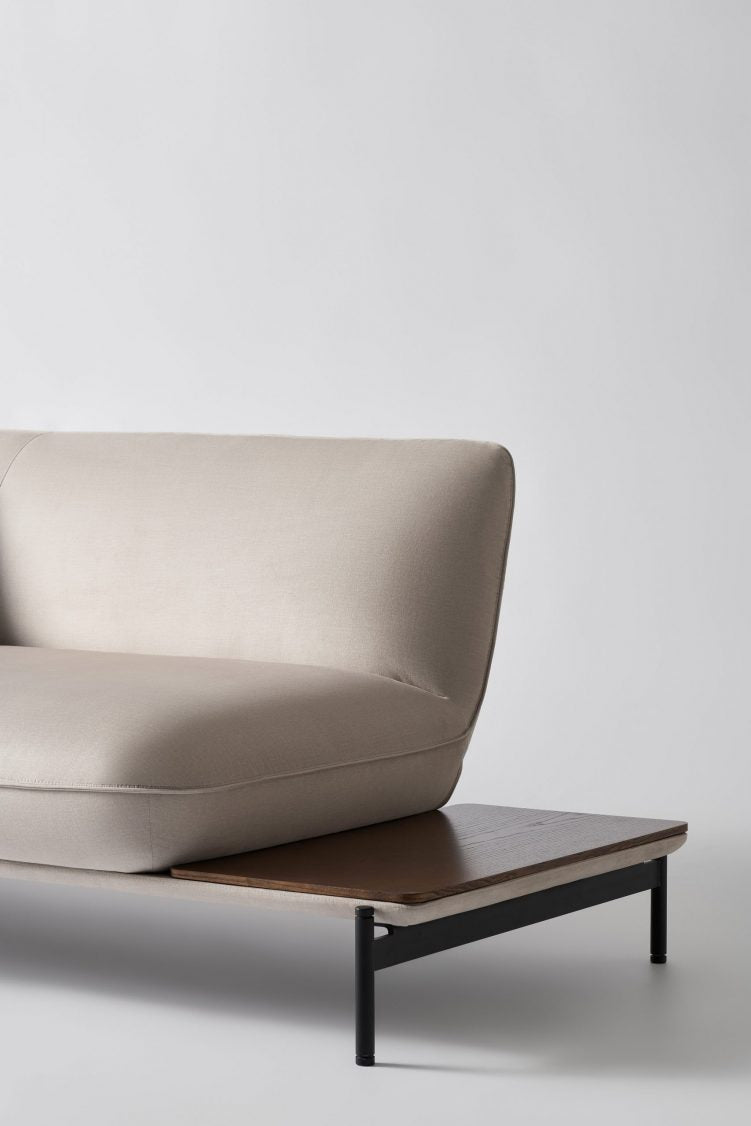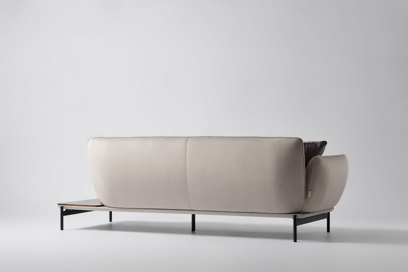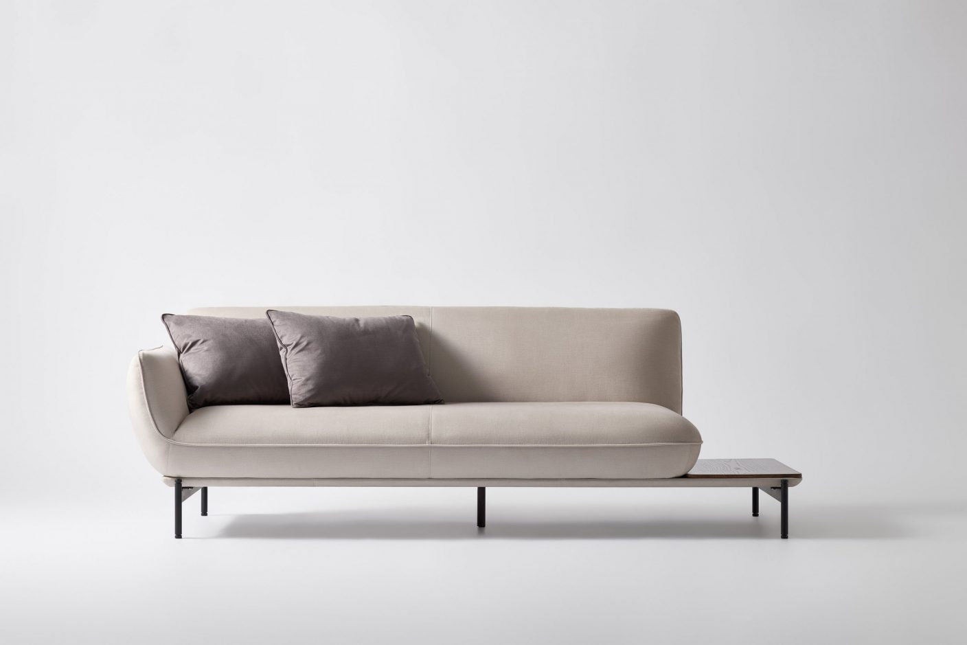 This unique piece stands out not only for its elegant design but also for its clever functionality, featuring a built-in table that seamlessly integrates into the sofa's structure. This sofa invites you to enjoy having everything you need within arm's reach, all while enhancing the aesthetic of your interior