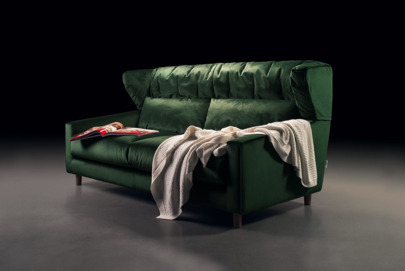 Perfect for relaxing by the fireplace, the MILTON sofa offers extraordinary softness and additional back pillows for enhanced comfort. Its unique "wings" design not only adds charm but also serves a practical purpose, reminiscent of times when catching warmth from the fireplace was essential in homes without heating.