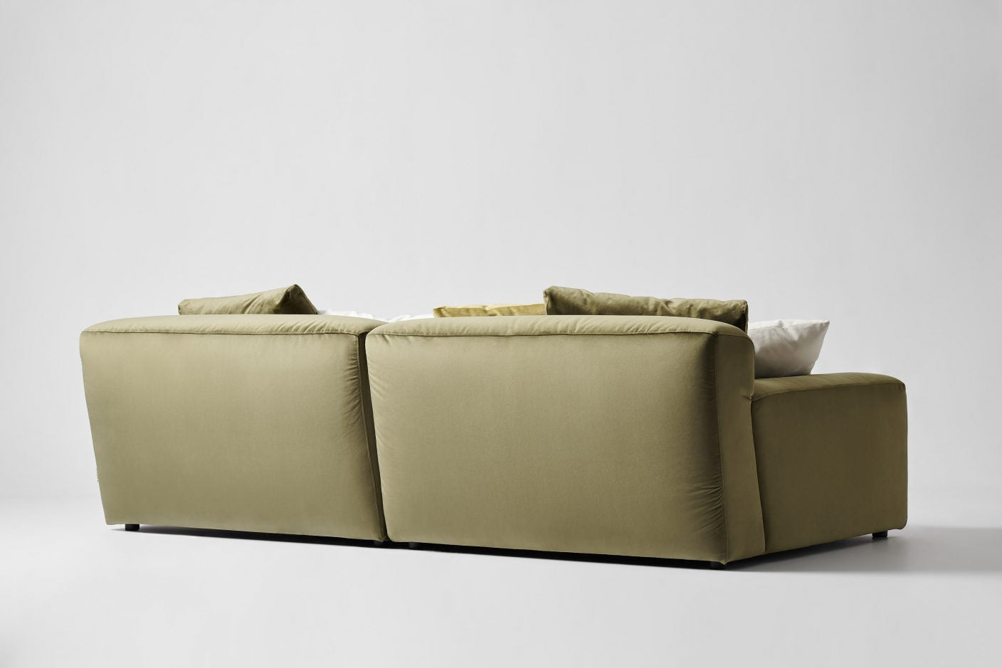 This sofa is made of two modules: a module with an armrest right and a module with an armrest left.