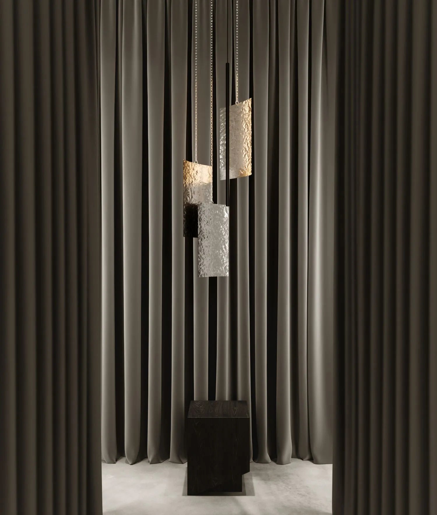 The Water Ripple Lamp from the SVITLOTIN collection by SVITANOK is a sculptural pendant light that transforms illumination into subtle atmospheric art. Its signature characteristic is the gently textured “water ripple” finish on satin stainless-steel panels when lit, the surface captures and diffuses light in gentle gradients, creating a dynamic interplay between light and shadow across walls and ceilings.