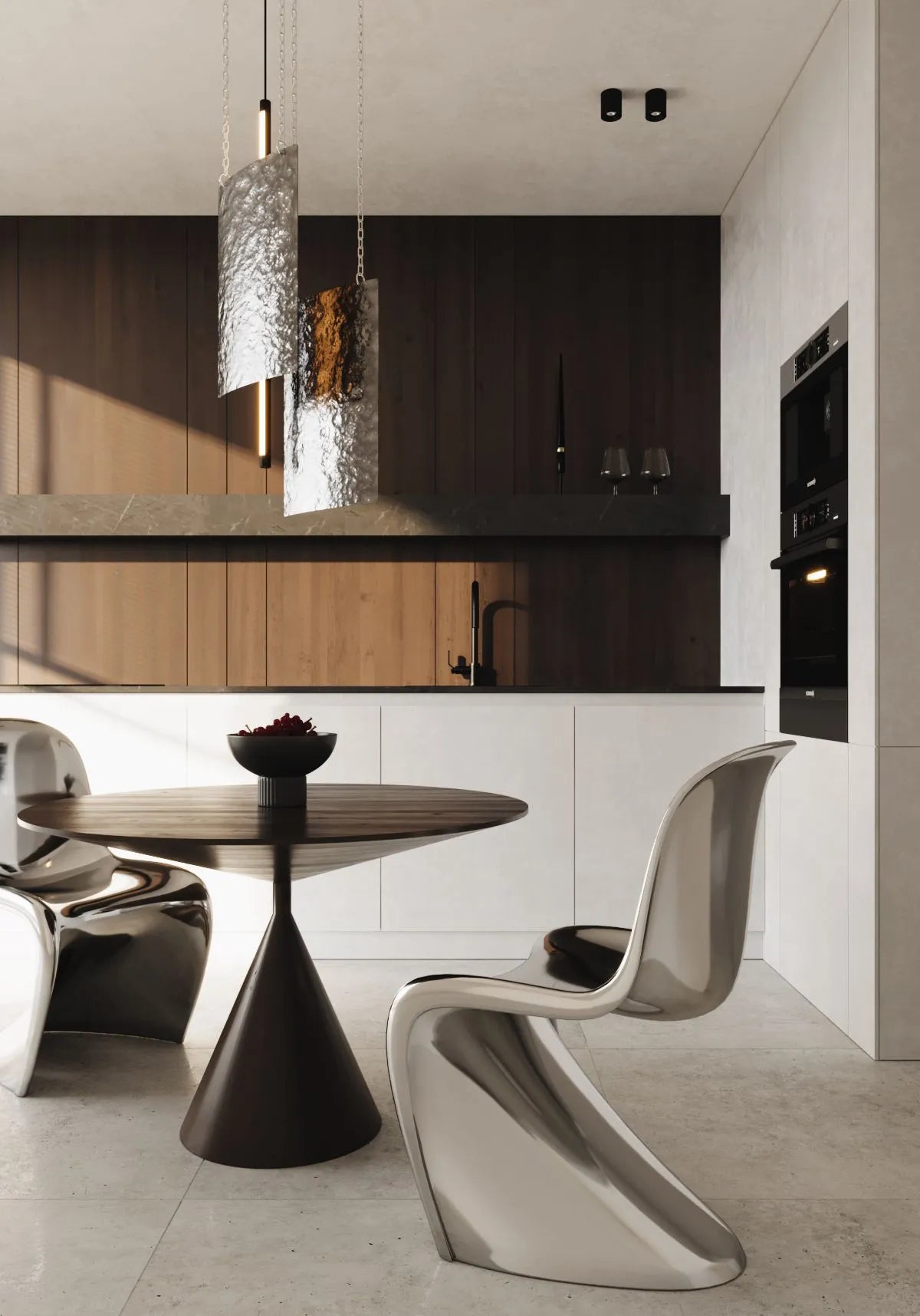 In terms of application, the Water Ripple Lamp works particularly well above kitchen islands, dining tables, in open-plan living areas, creative studios, or any contemporary loft-style space that benefits from ambient, sculptural lighting. As a design object, it adds depth, mood and a sense of quiet movement to the room as light shifts across its rippled surface over the day.