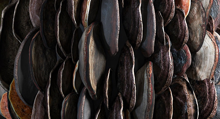 Materials: Metal, plywood, wood polyporemushrooms, LED