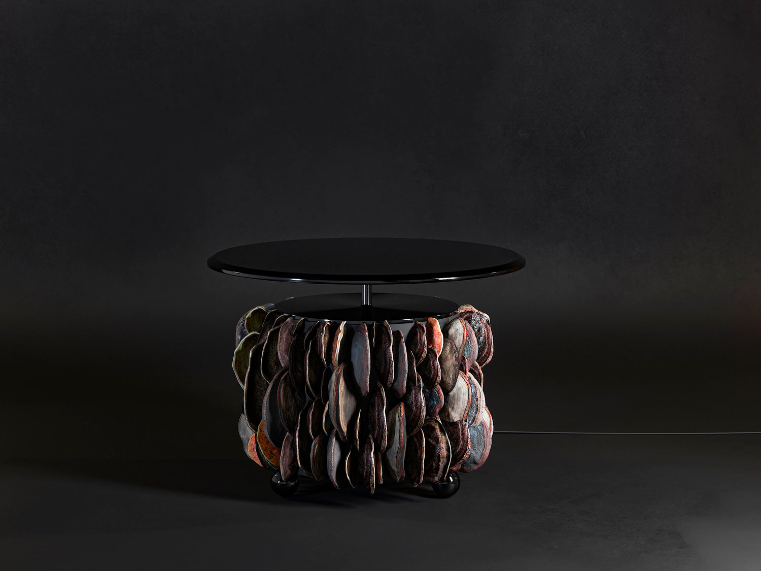 The Mushrooms Center Table is an extraordinary piece of design is a captivating exploration of the decorative potential found within the world of wood mushrooms.