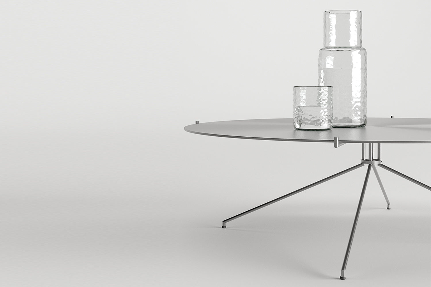 The design process involved generating ideas, sketching, rendering, and refining to eliminate excess. These efforts culminated in the impeccably stylish OX II table. Crafted from stainless steel and metal, it features a minimalist round top with a stunning finish, gracefully supported by slender legs that exude sophistication and style.