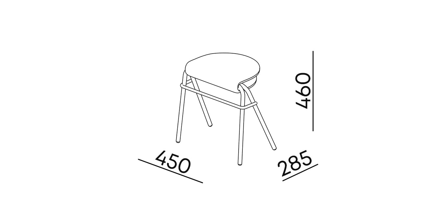 With a standard seat height of 460 mm, width of 450 mm and depth of 285 mm, the TACO Stool delivers compact proportions that make it suitable for living areas, kitchens, lounge zones and hospitality interiors where designer stools, upholstered bar stools or compact seating solutions are specified. All versions of TACO are lightweight and stackable, enabling flexible layouts and efficient space management in interior plans.