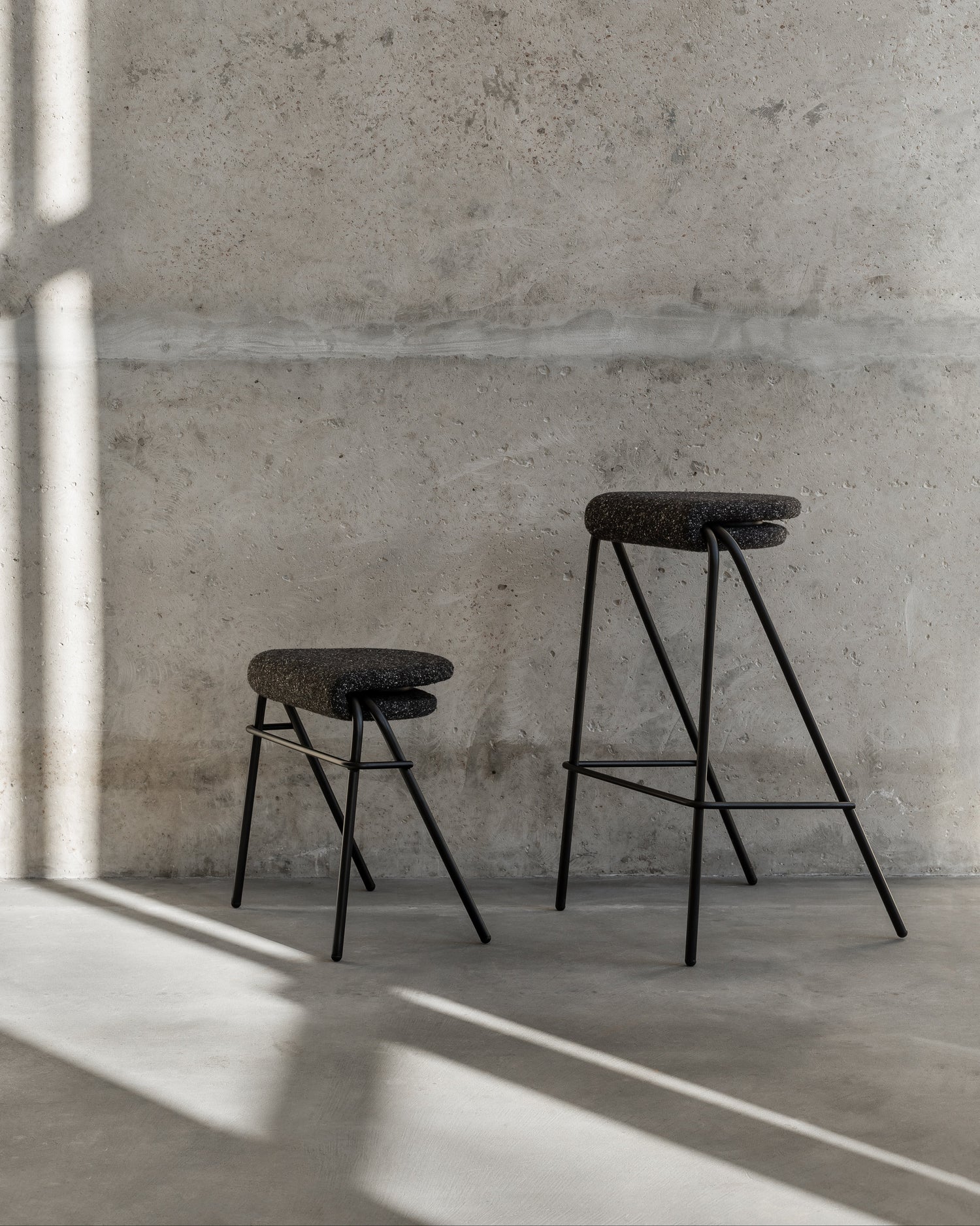 The construction of the TACO Stool features a lightweight steel frame and a soft upholstered seat, where the seat element is threaded directly onto the frame without visible fixings. This detail reinforces the design’s structural logic and supports easy visual integration into a variety of spatial schemes. The stool’s steel frame can be finished in any RAL colour of choice or customised to suit specific material briefs.
