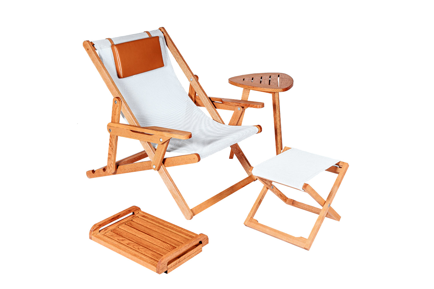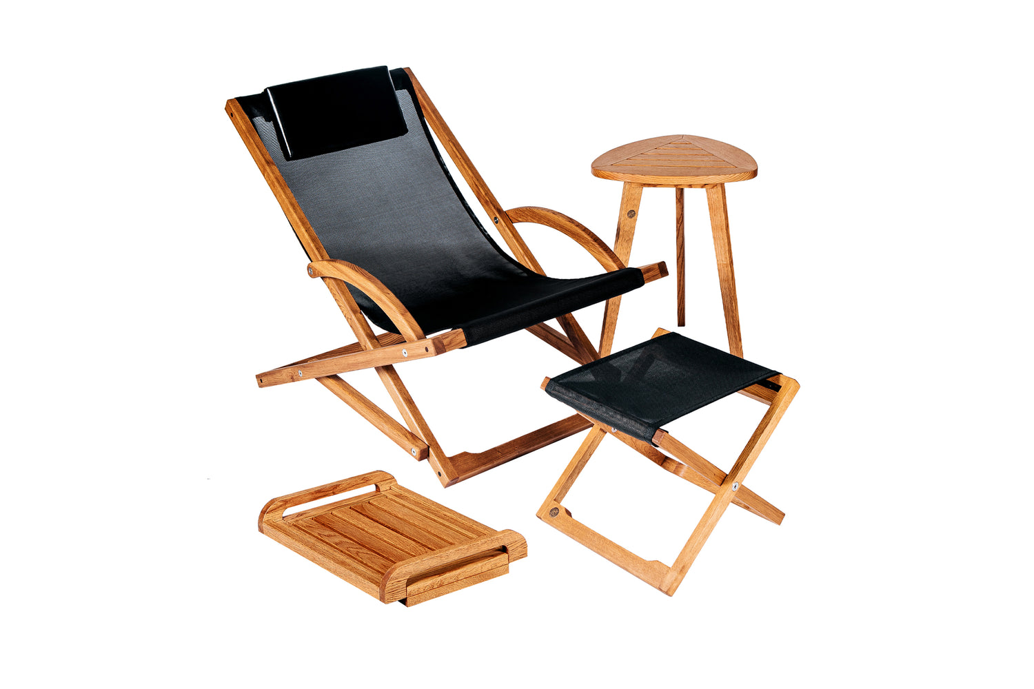 You have the option to order a complete set that includes a chaise lounge chair, a coffee table, a footrest, a tray and a head pillow.