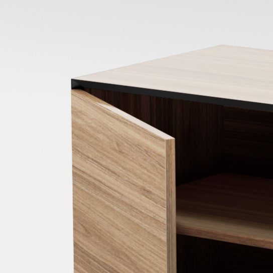 The Delta series features a distinctive 45° black edging on the front of the furniture, while the remaining edges are finished in a matching tone for a cohesive look.