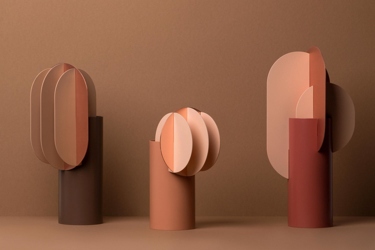 Gabo CS7 with Delaunay CS7 and Ekster CS7 vases create a perfect look together. This combination of coffee-brown, beige and copper colours evokes a soft, warm, and almost southern atmosphere.