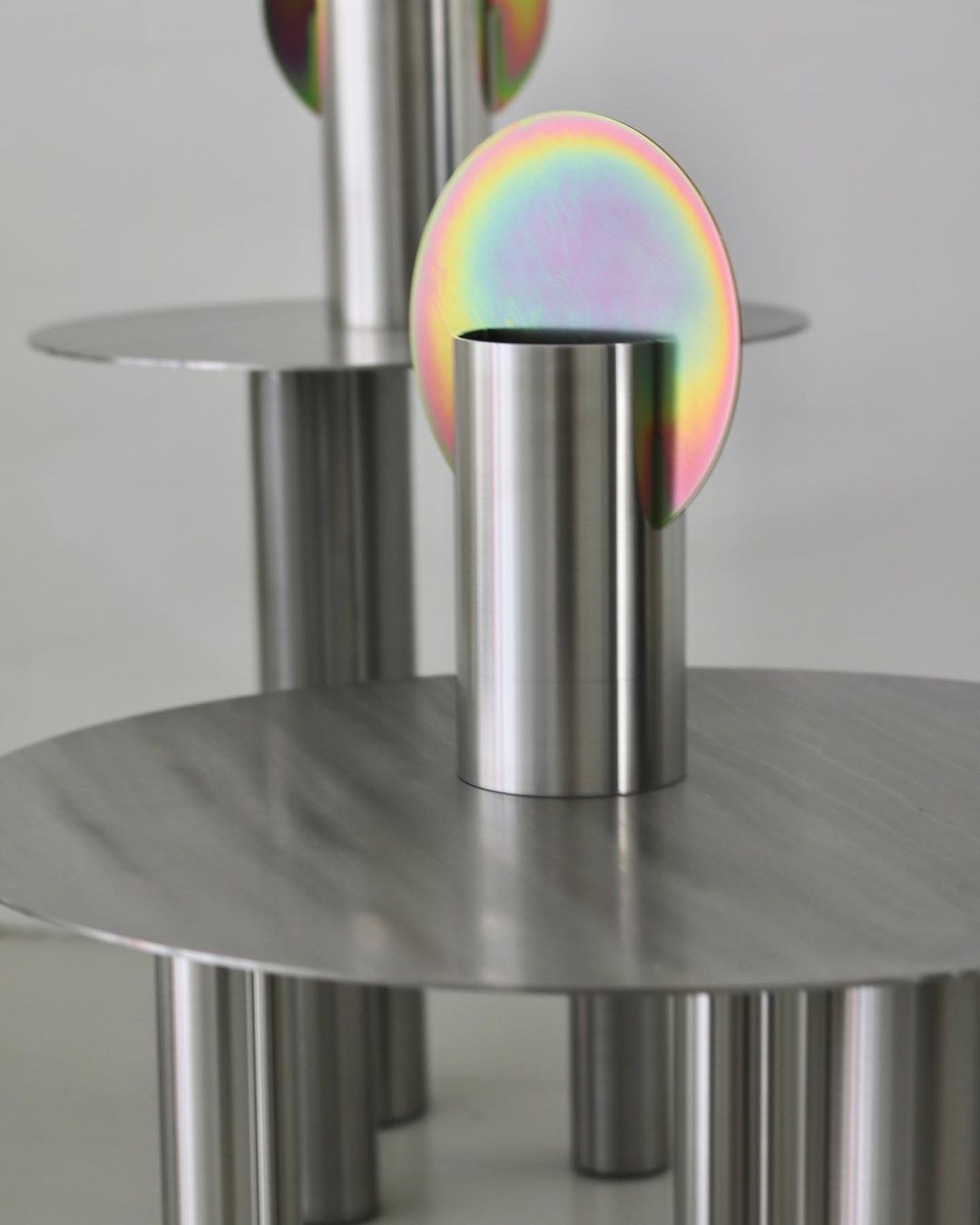 The details of the Genke Limited Edition vases are created with extraordinary craftsmanship and attention. The metal from which these are made was manually heat-treated and every detail impresses with its geometric precision and perfection of form.