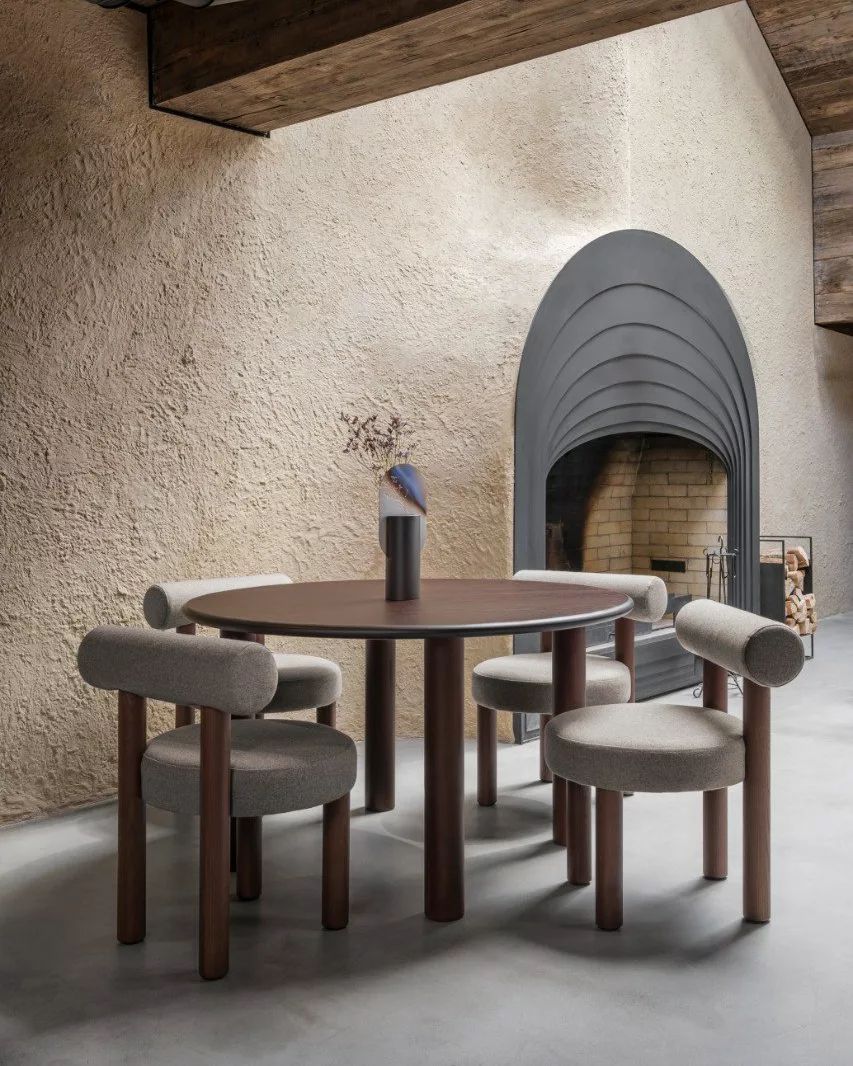 This combination of cobalt blue, copper, sangria red and copper creates a modern and cosy atmosphere.