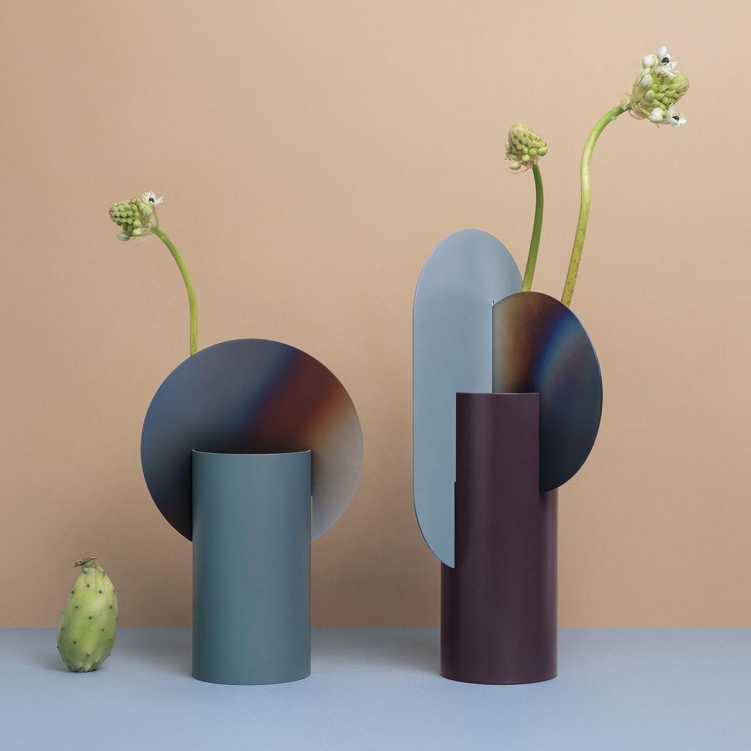 Even an empty vase looks like a small art object in your house. Characterised by bold geometric and colour elements, each vase is created with a meticulous attention to detail. Advanced burnt metal techniques create unique hues that add the perfect touch to these elegantly composed vases. Its geometric shape and structure can be used as dividers or holders to create eye-catching floral compositions. These vases represent excellence in craftsmanship and quality – suitable for any collection due to their timeless design and materials.