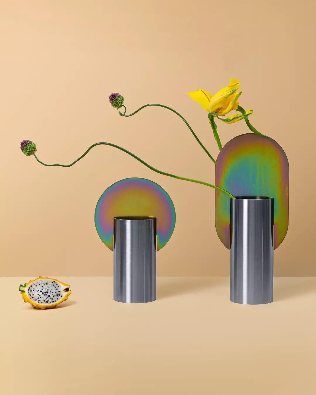 The bright Malevich Vase Limited Edition CSL5 elegantly complements the Genke Vase Limited Edition CSL7.
