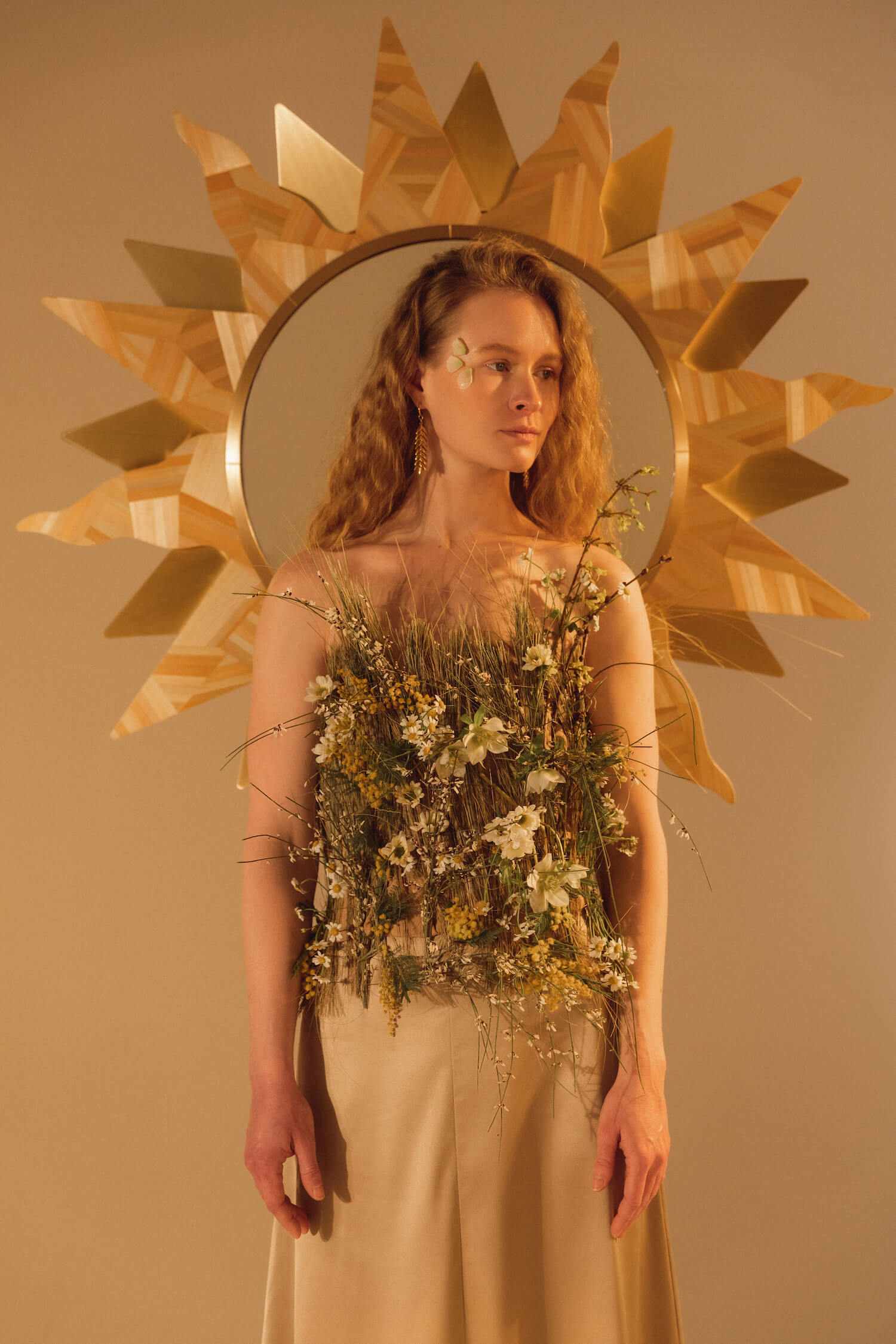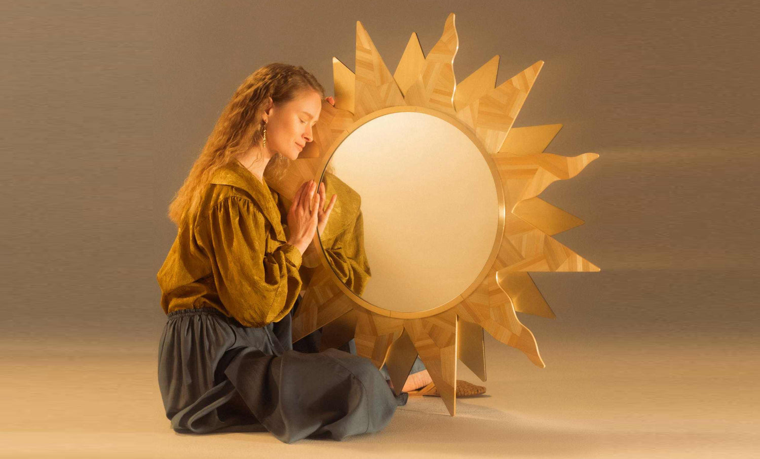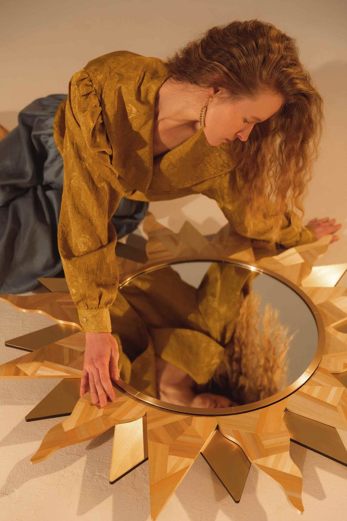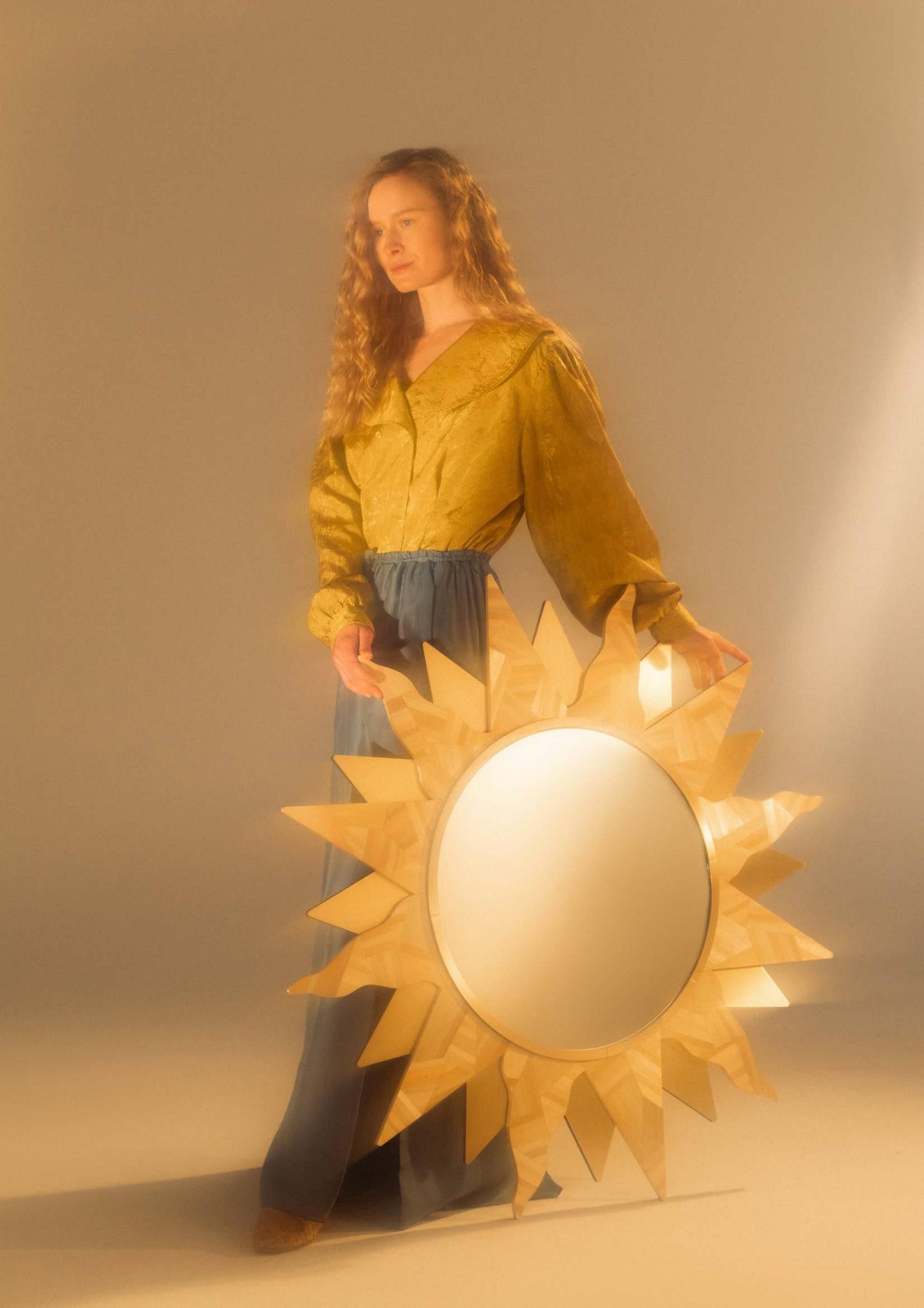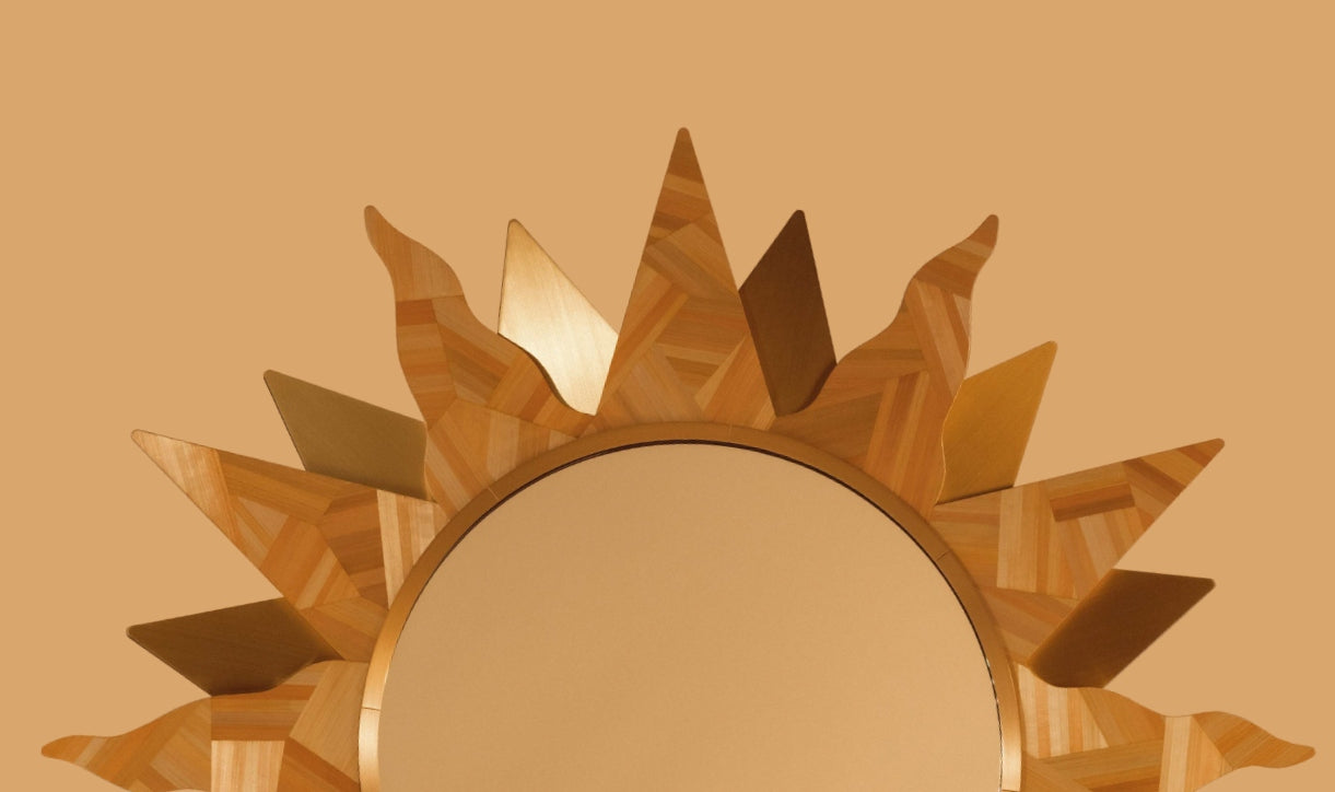 The SUN decorative wall mirror for the living room is a shining amulet designed by the talented Olexandra Rudenko, who was inspired by the beauty of nature and the charm of naive folk art.