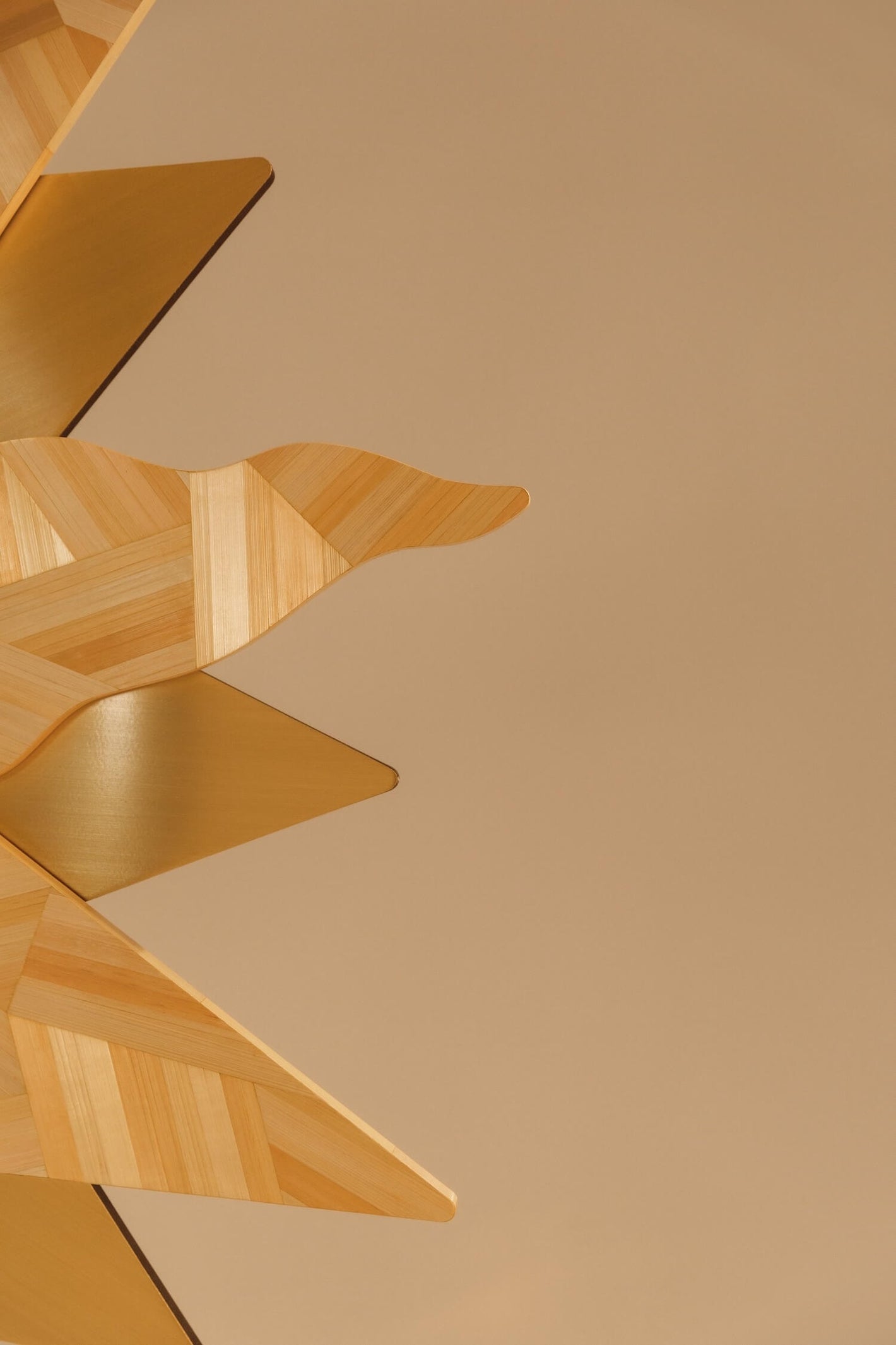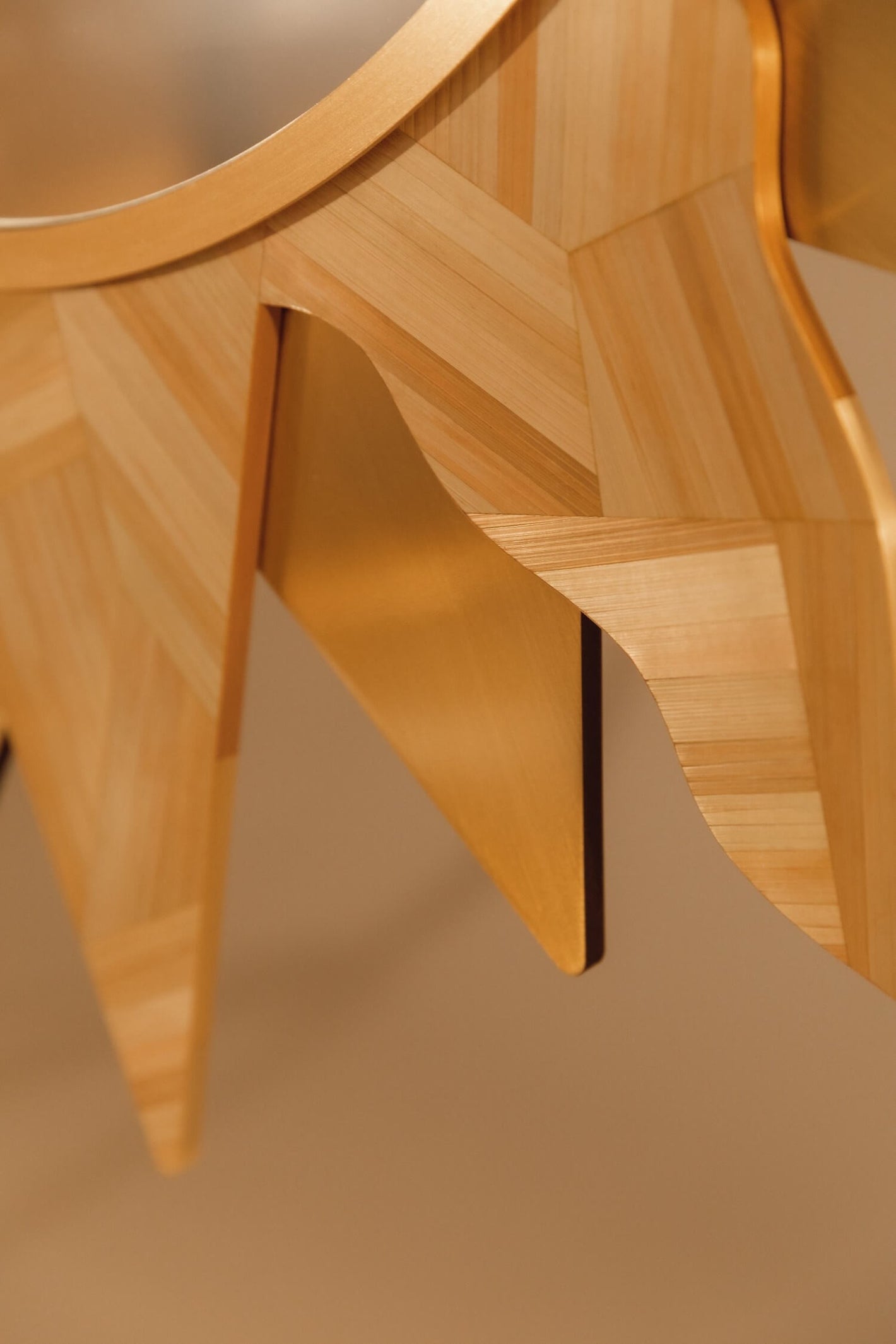 - MATERIALS: MDF, painted rye straw, brass, mirror